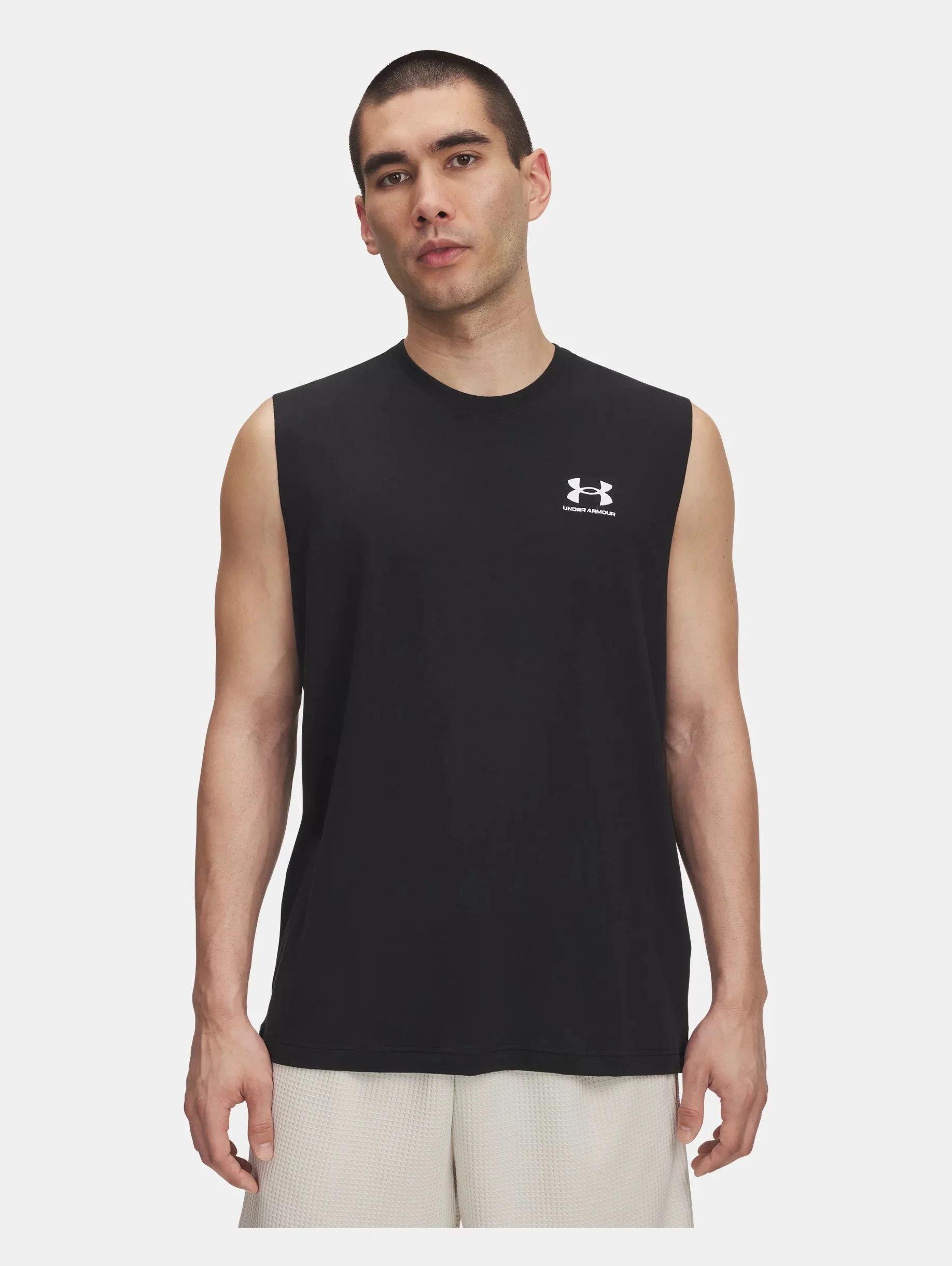 Everyone makes graphic Ts...but Under Armour makes them better.The fabric we use is light, soft, and quick-drying. This sleeveless shirt features a small chest logo so you can wear it with anything. Product Details - Super-soft, cotton-blend fabric provides all-day comfort Size & Fit - Fuller cut for complete comfort. Space & Care - Style #: 6005616 - 60% Cotton/40% Polyester - Imported