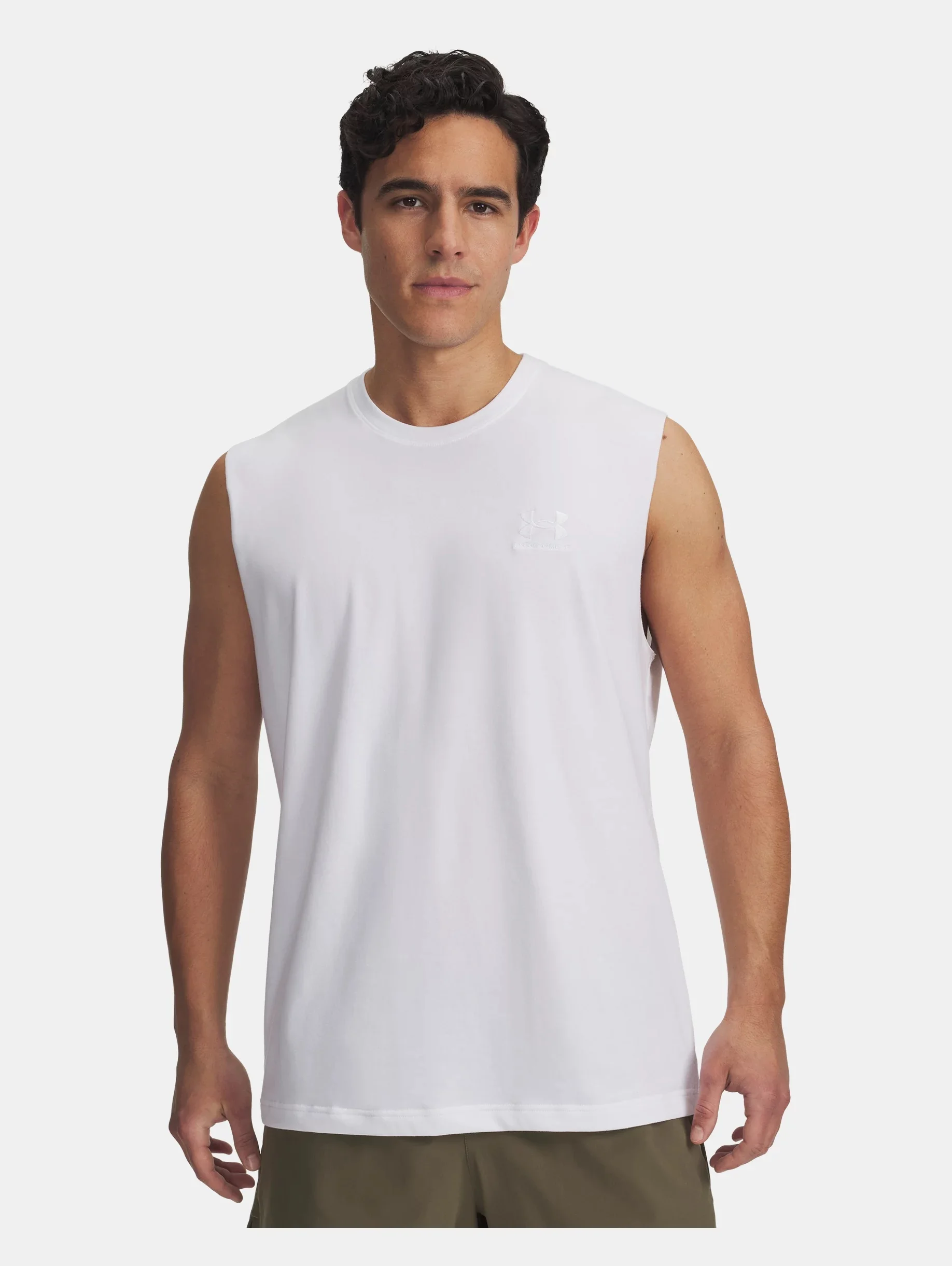 Everyone makes graphic Ts...but Under Armour makes them better.The fabric we use is light, soft, and quick-drying. This sleeveless shirt features a small chest logo so you can wear it with anything. Product Details - Super-soft, cotton-blend fabric provides all-day comfort Size & Fit - Fuller cut for complete comfort. Space & Care - Style #: 6005616 - 60% Cotton/40% Polyester - Imported