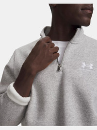 UA Icon Fleece has the feel of your favorite old school fleece with a clean, oversized fit that looks just as good with gym gear as it does with street clothes. Product Details - Ultra-soft, mid-weight cotton-blend fleece with brushed interior for extra warmth - ¼ Zip front makes for easy layering - Ribbed cuffs & bottom hem - Embroidered logo Size & Fit - Fuller cut for complete comfort. Space & Care - Style #: 6012710 - 80% Cotton/20% Polyester - Imported
