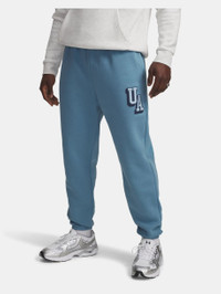 UA Icon Fleece has the feel of your favorite old school fleece with a clean, oversized fit that looks just as good with gym gear as it does with street clothes. These joggers feature varsity-inspired graphics. Product Details - Ultra-soft, mid-weight cotton-blend fleece with brushed interior for extra warmth - Encased elastic waistband with external drawcord - Open hand pockets & secure snap-closure back pocket - Encased elastic cuffs Size & Fit - Fuller cut for complete comfort. Space & Care - Style #: 6003934 - Embroidered graphic - Inseam: 29.5" - Pockets: Yes - 80% Cotton/20% Polyester - Imported