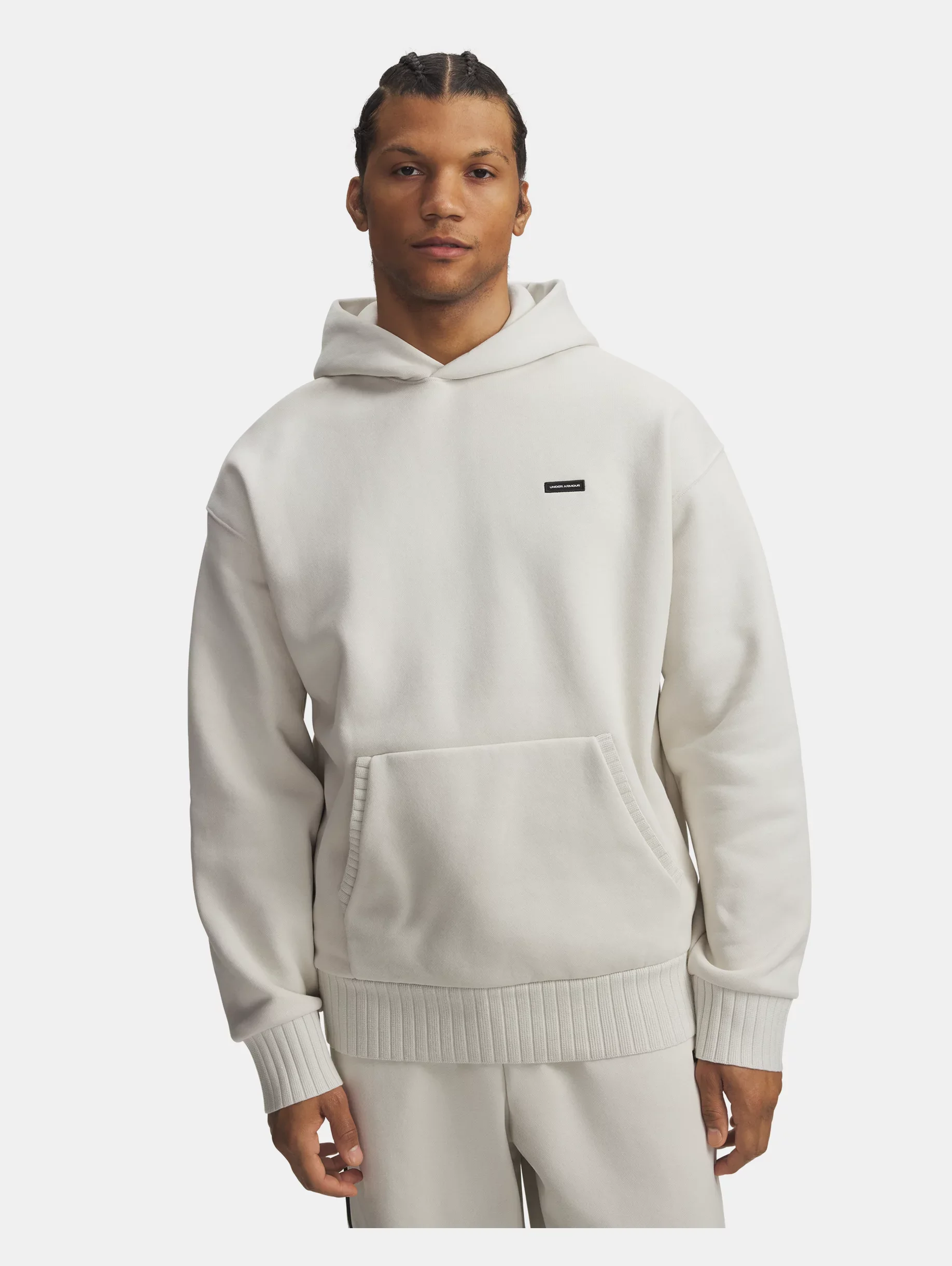 UA Icon Fleece has a clean, oversized fit that looks just as good with gym gear as it does with street clothes. This heavyweight hoodie with ribbed panels is super warm for those extra cold days. Product Details - Ultra-soft, heavyweight cotton-blend fleece with brushed inside for extra warmth - Front kangaroo pocket - Ribbed cuffs, bottom hem & pocket trim - Drop hem shoulder for a roomy, oversized fit Size & Fit - Fuller cut for complete comfort. Space & Care - Style #: 6008900 - Embroidered patch logo - 80% Cotton/20% Polyester - Imported