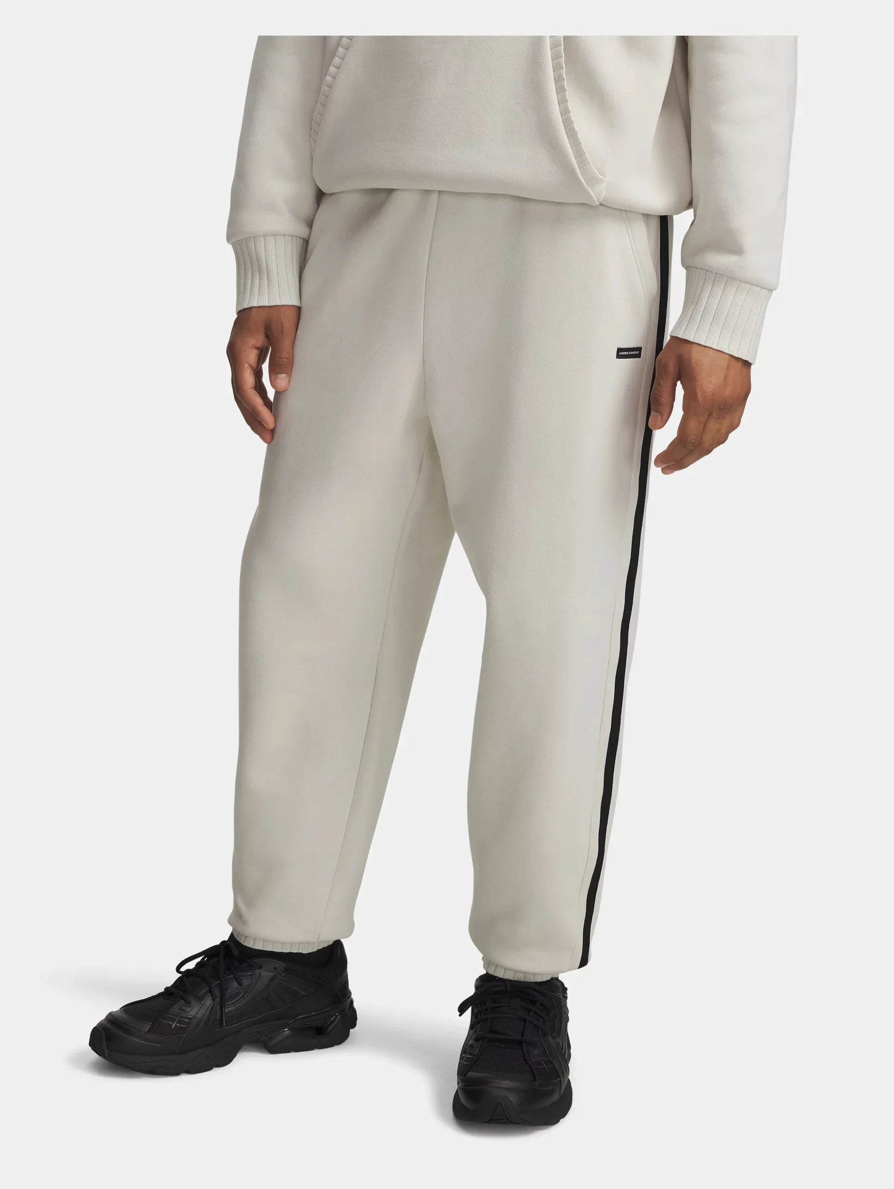 UA Icon Fleece has a clean, oversized fit that looks just as good with gym gear as it does with street clothes. These heavyweight joggers with ribbed panels are super warm for those extra cold days. Product Details - Ultra-soft, heavyweight cotton-blend fleece with brushed inside for extra warmth - Encased elastic waistband with internal drawcord - Open hand pockets & secure, snap-closure back pocket - Roomy, oversized fit with ribbed cuffs Size & Fit - No Fit Type Space & Care - Style #: 6005696 - Inseam: 29" - Pockets: Yes - Embroidered patch logo - 80% Cotton/20% Polyester - Imported