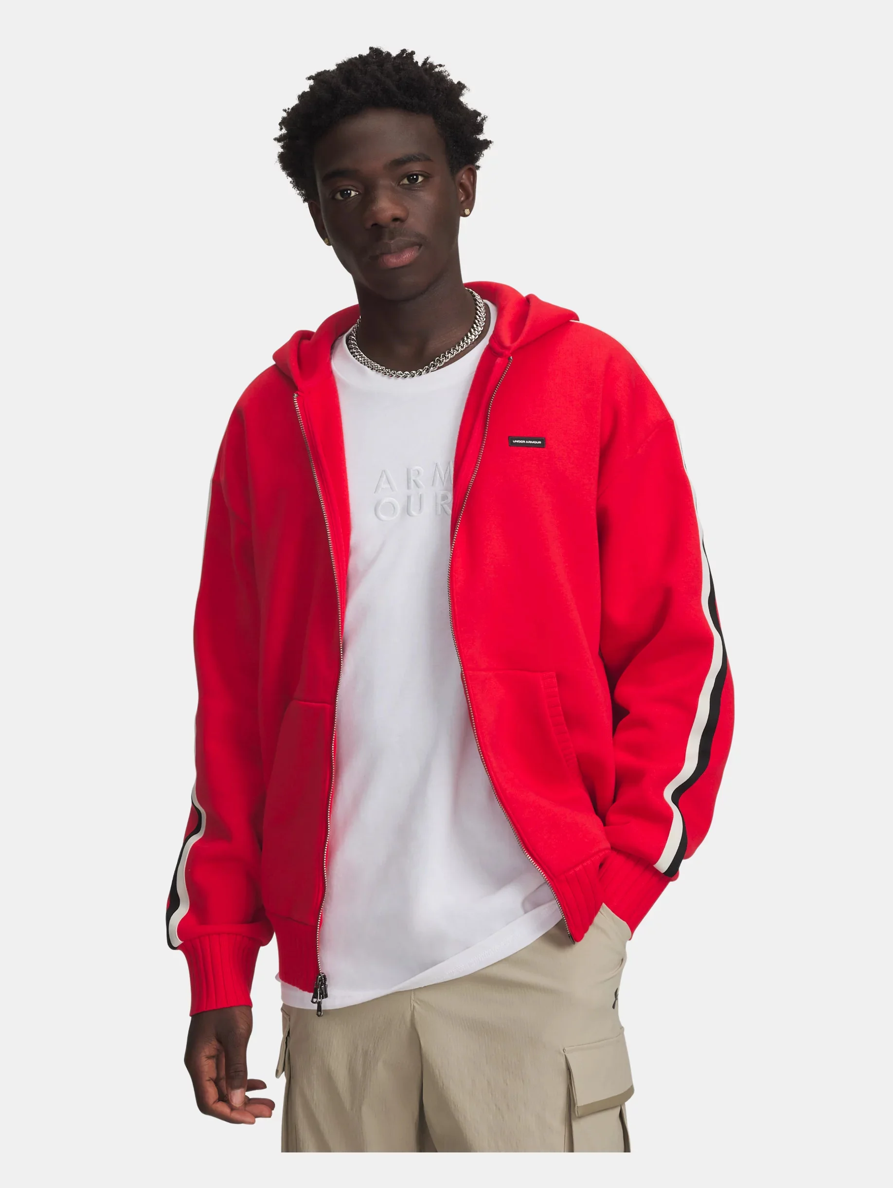UA Icon Fleece has a clean, oversized fit that looks just as good with gym gear as it does with street clothes. This heavyweight full zip with ribbed panels is super warm for those extra cold days. Product Details - Ultra-soft, heavyweight cotton-blend fleece with brushed inside for extra warmth - Ribbed side panels, cuffs & bottom hem - Open hand pockets - Two-way front zip - Drop hem shoulder for a roomy, oversized fit Size & Fit - Fuller cut for complete comfort. Space & Care - Style #: 6003937 - Embroidered patch logo - 80% Cotton/20% Polyester - Imported