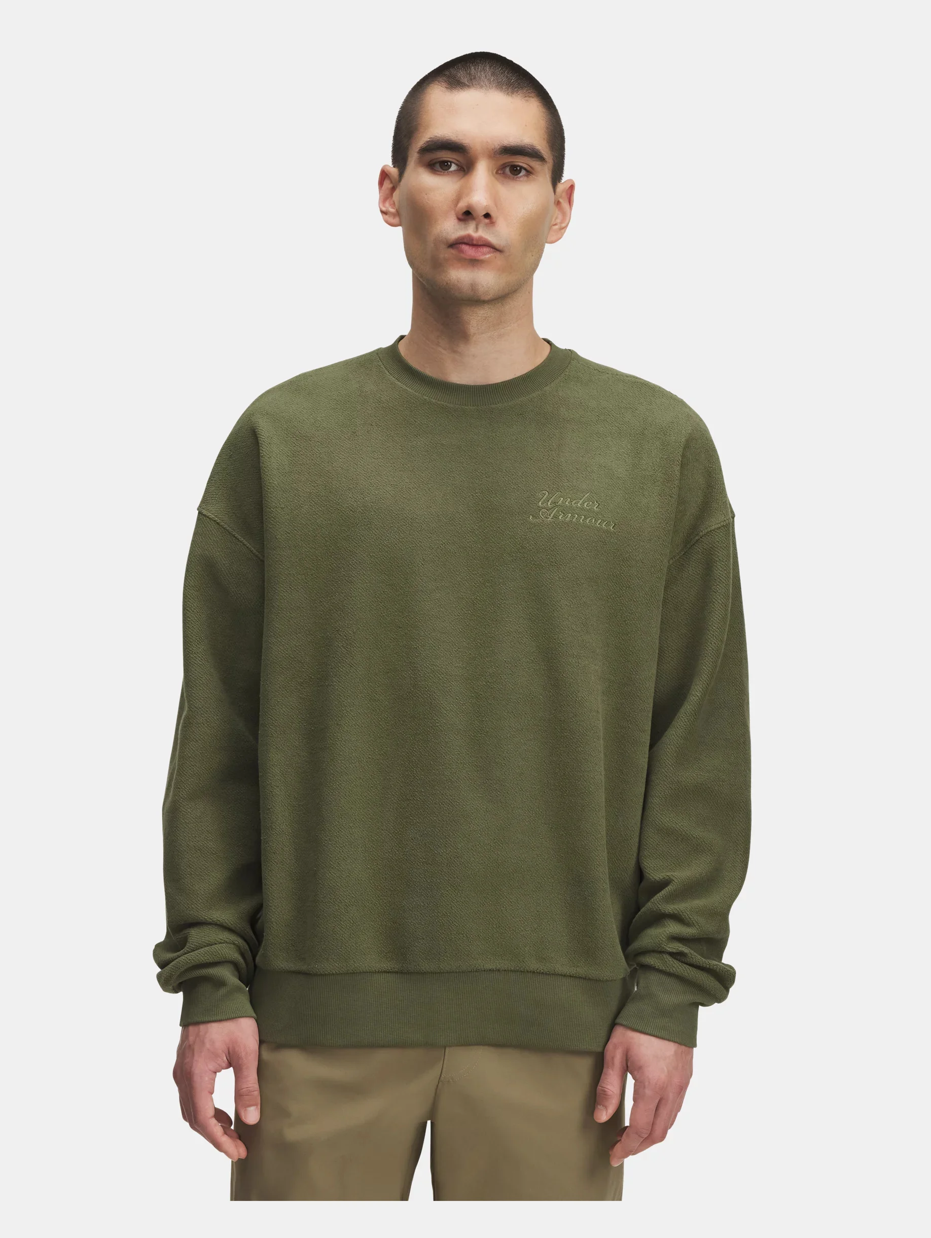 This terry crew has the soft feel of fleece, but without the extra heat of brushed fleece. That makes it perfect for cool Summer nights or early morning training. Product Details - Cotton Terry fabric is super-soft & comfortable with cozy exterior finish & a smooth inside - 4-way stretch material moves better in every direction - Ribbed collar, cuffs & bottom hem - Drop hem shoulder Size & Fit - Fuller cut for complete comfort. Space & Care - Style #: 6003942 - Embroidered logo - 100% Cotton - Imported