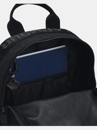 What's it do? One of our most popular backpacks. Light, tough, and water rolls right off. Product DNA - Water-resistant UA Storm technology keeps your essentials dry - Zippered main compartment with easy-access phone pocket & key clip - Front valuables pocket - Adjustable webbing straps with jacquard wordmark detail - Top grab handle - Uses a fluorine-free water repellent treatment - One Size Fits Most - Style #: 1380477 - Dimensions When Full: 10.2"W x 13"H x 3.3"L - Volume: 6 L - 100% Polyester - Imported