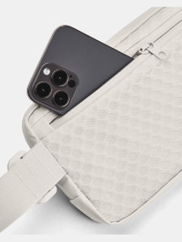 What's it do? The pockets are designed to give you quick access to the items you need the most, and you can wear it as a waist or crossbody bag. Product DNA - Water-resistant UA Storm technology keeps your essentials dry - Adjustable strap with buckle closure can be worn as a waist bag or a crossbody - RFID-blocking pocket on back for credit card theft protection - Zippered main compartment with internal organization pockets & key clip - Front valuables pocket - *UA Contain Micro attachment sold separately - One Size Fits Most - Style #: 1378418 - Dimensions When Full: 2"W x 5.1"H x 7.9"L - Volume: 2 L - 100% Polyester - Imported