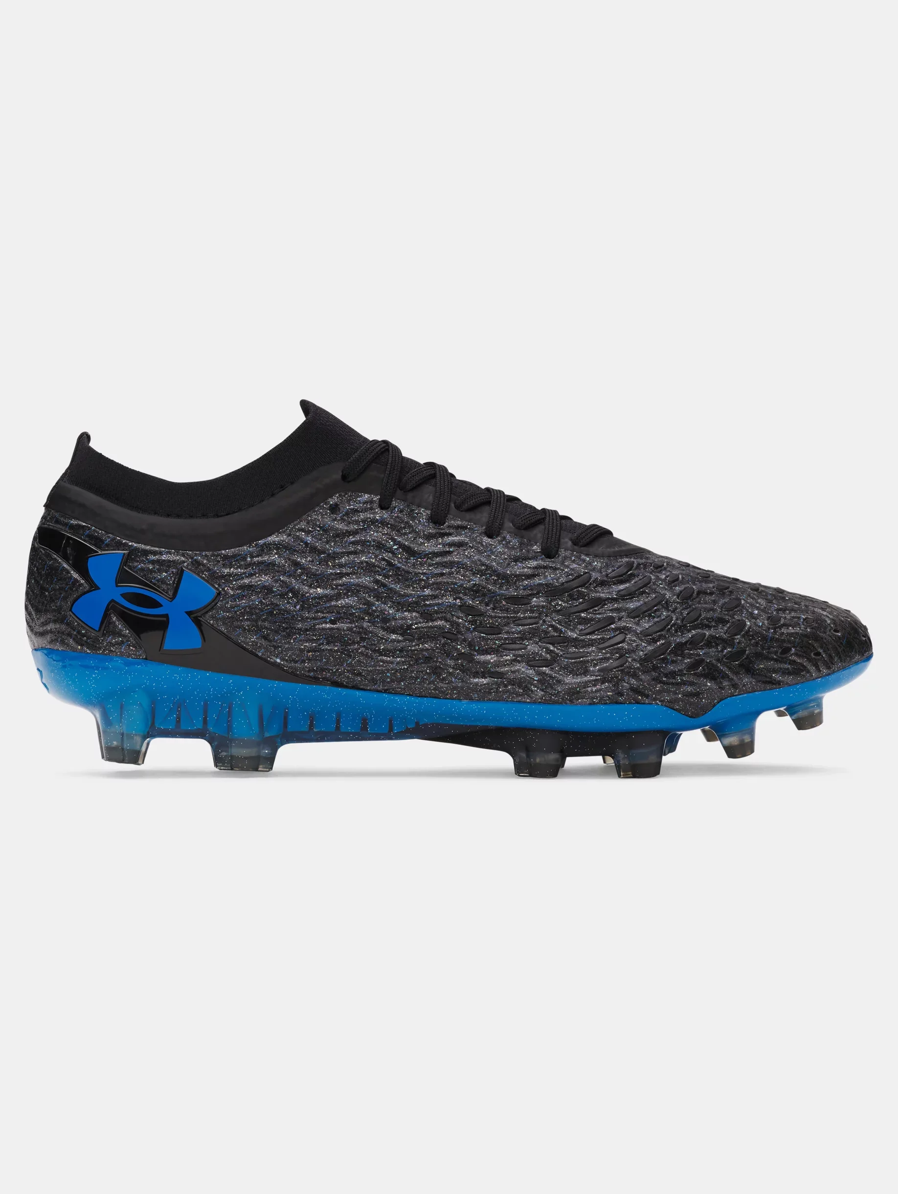 The UA Magnetico Elite 5 cleat adapts to your foot's shape and movements for a customized fit and locked-in feel. Maximize every touch for total control on the pitch. Product Details - UA Clone upper provides a truly customized fit, no matter your foot size - An internal layer of flexible, auxetic material molds around the foot for a precise, glove-like fit & feel - 3D print for additional touch & control & silicone strike zone for maximum control when shooting - Knit collar & tongue for a sock-like fit with premium internal foam for heel hold & added comfort - Offset tongue allows for additional space on the medial side for control, passing & shooting - Lightweight mixed stud control outsole for multi-directional movement on firm ground natural surfaces - Enhanced stud shape mitigates pressure & provides optimum traction Size & Fit - Regular Space & Care - Style #: 6000544 - Weight: 8.5 oz - Lace type: Standard tie - Imported - Fits a half size small