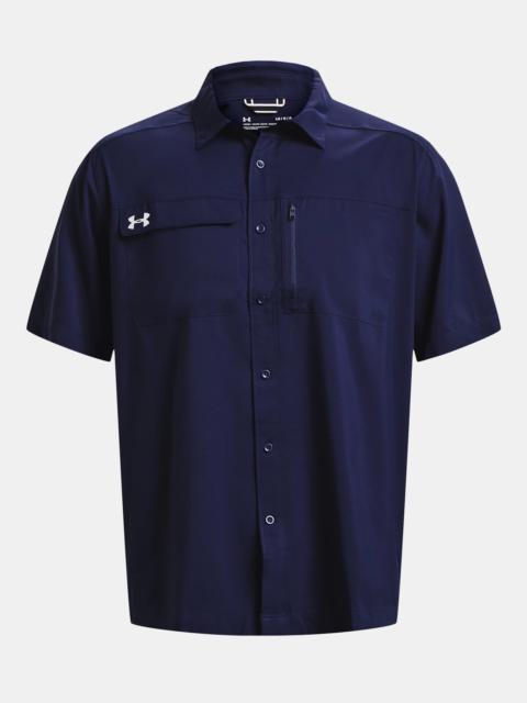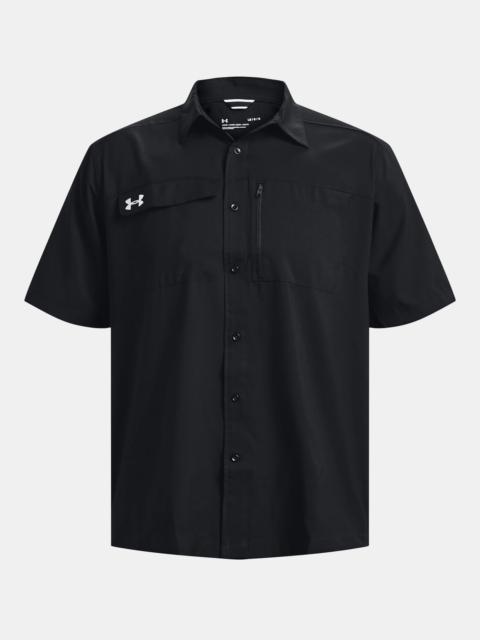 It's light and breathable so you can move, with just the right warmth for early morning practice. Product Details - Smooth woven fabric with built-in stretch for greater mobility - UPF 30 protects your skin from the sun's harmful rays - Stain-resistant finish - Material wicks sweat & dries really fast - Flap-closure chest pocket & secure, zip chest pocket with utility pocket opening at top - Button-down collar - Shaped hem Size & Fit - Fuller cut for complete comfort. Space & Care - Style #: 1351360 - 87% Polyester/13% Elastane - Imported - Machine wash warm with like colors - Use only non-chlorine bleach when needed - Tumble dry low - Do not iron - Do not use softeners - Do not dry clean