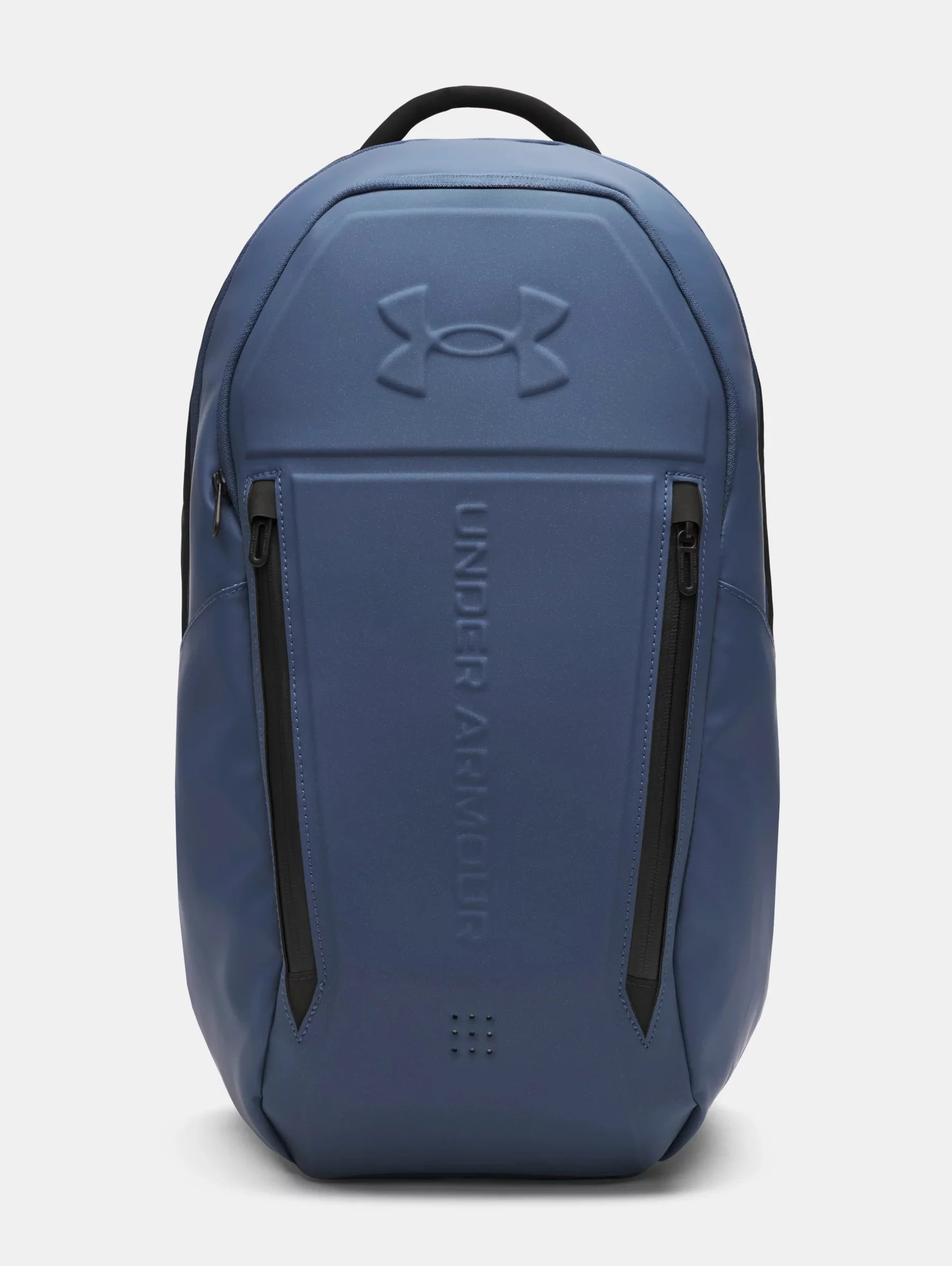Suspends the weight instead of dragging it down.The straps stretch and flex with your body to help absorb impact, reduce shoulder pressure, and balance your load—so you stay aligned, mobile, and comfortable all day. Product Details - Water-resistant UA Storm technology keeps your essentials dry - New UA Suspension™ Straps with woven auxetic material evenly distribute weight to help lessen the load - LEVELED™ strap system guides you to assure straps are adjusted evenly for balanced weight distribution - Padded, quilted back panel for comfortable carry - Large main compartment can be used for shoes/laundry - Media compartment holds up to 16" MacBook Pro® or similarly sized laptop with additional organization pockets - Expandable zipper increases front pocket storage space for days when you need to carry even more gear - 3 front zip pockets & 2 side water bottle pockets that fit up to 32 oz bottle Size & Fit - One Size Fits Most Space & Care - Style #: 6005747 - Molle webbing for additional attachment points - Top grab handle - Dimensions When Full: 19.7"H x 11.6"W x 6.7"D (8.3" when expanded) - Volume: 28 L - Volume (when expanded): 35" - 74% Polyester/16% Polyurethane/9% Rubber 1% Elastane - Imported