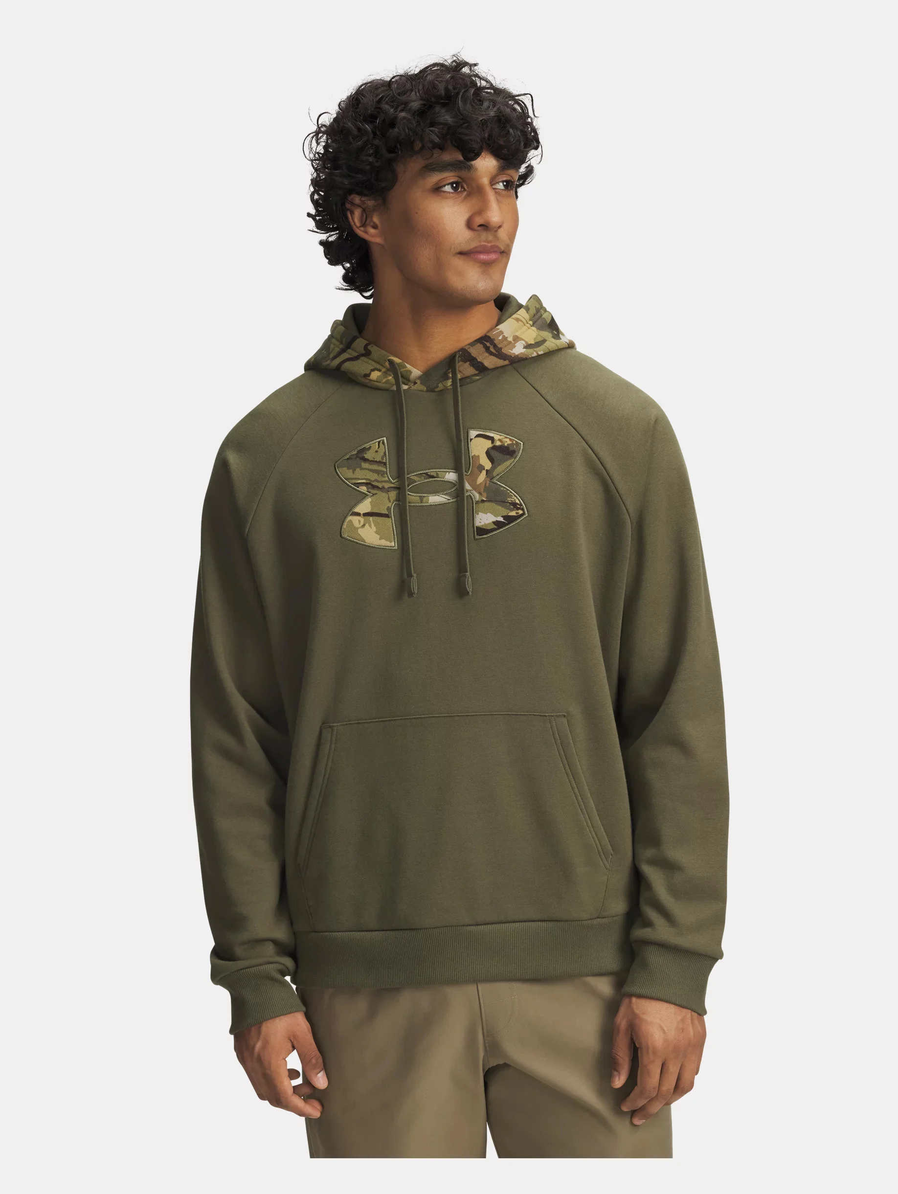 This hoodie keeps you warmed up and ready for pretty much everything you do—it's light, comfy, and super-soft on the inside. And features a camo print for an added pop. Product Details - Ultra-soft cotton-blend fleece with brushed inside for extra warmth - Front kangaroo pocket - Ribbed cuffs & bottom hem - Raglan sleeves - Printed hood - Main body fabric engineered to reduce fiber shedding leveraging Under Armour's Fiber Shed Test Method Size & Fit - Fuller cut for complete comfort. Space & Care - Style #: 6005913 - 56% Cotton/44% Polyester - Imported