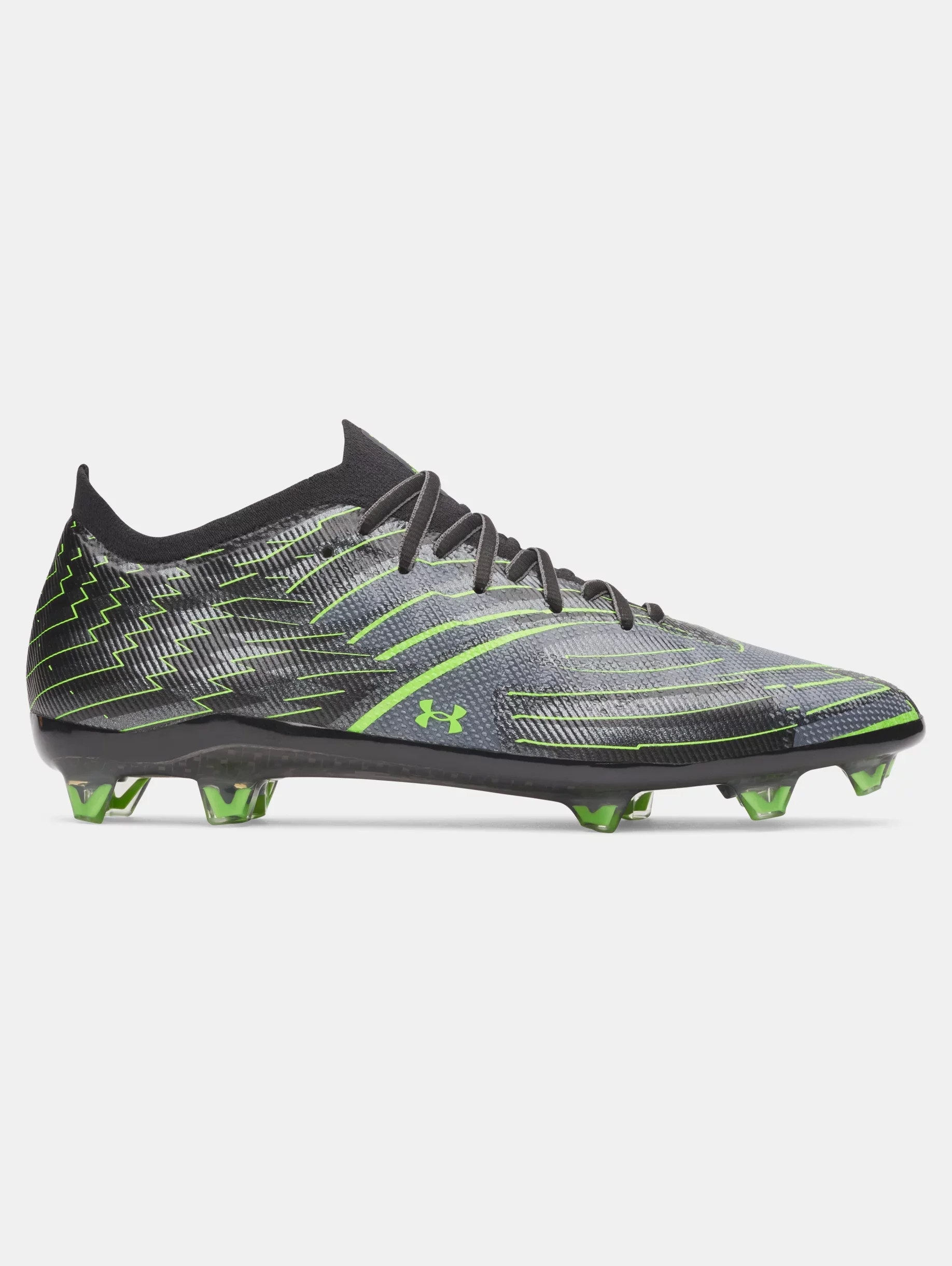 Product Details - Micro warp upper for directional lock out, limited stretch & dynamic response - Engineered knit stretch collar for a close-to-foot feel & molded internal counter for improved hold & fit - 3D haptic micro-texture on vamp for wet & dry ball contact - Mach-Drive tuned carbon fiber plate with directional flex forefoot & forged carbon fiber midfoot helps you feel quicker - Molded UA HOVR+ insole for ultimate underfoot comfort - New last engineered & tested for speed players with snug fit & lower toe spring to get under the ball - Biomechanics-driven stud layout for max deceleration & acceleration with floating crystal studs for added sizzle - Best suited for natural grass surfaces Size & Fit - Regular Space & Care - Style #: 6006234 - Upper contains at least 20% recycled content - Weight: 7.5 oz - Lace type: Standard tie - Imported