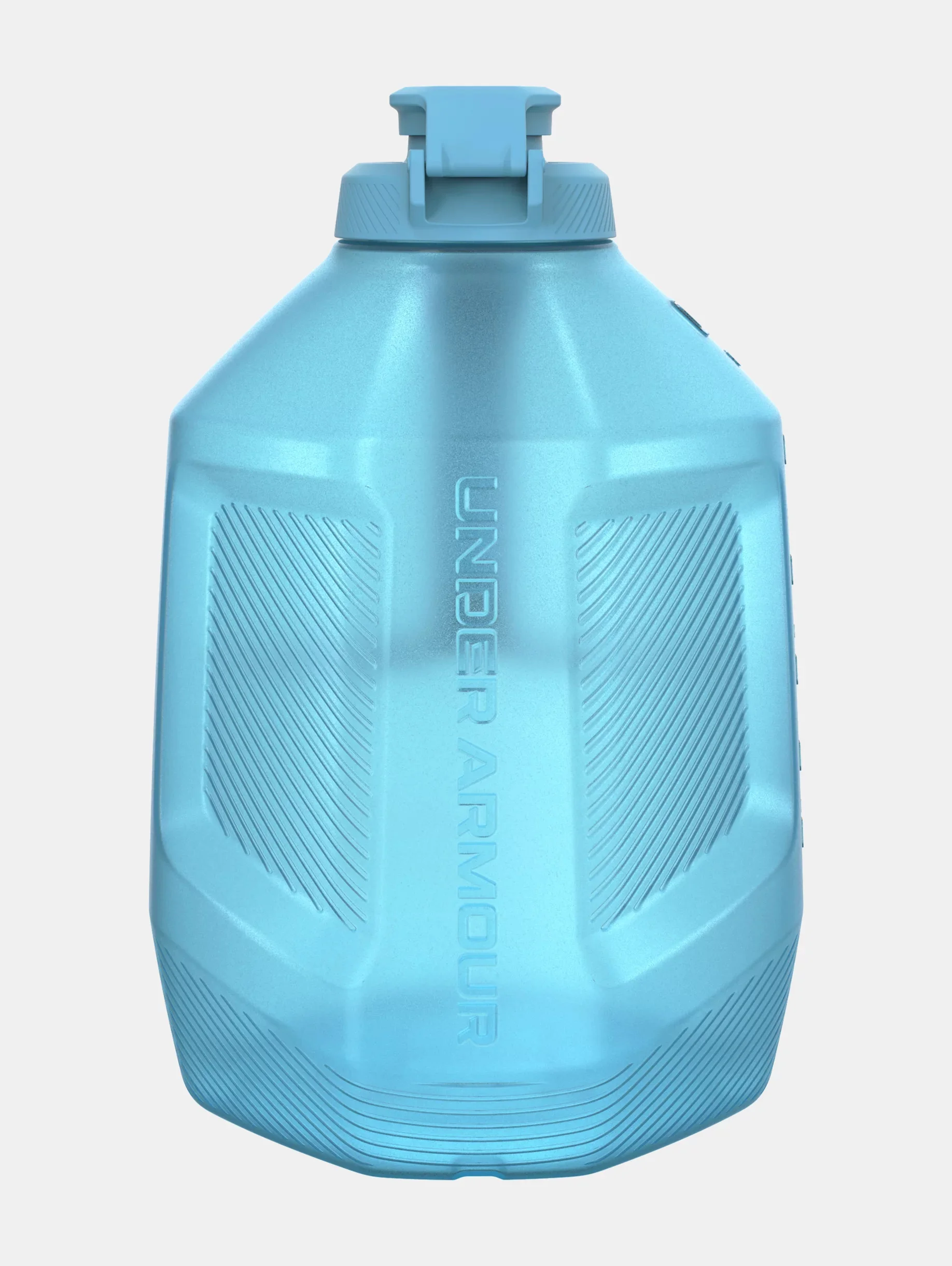 What's it do? This is a next-level jug. It offers maximum volume and premium details, and is easy to carry and drink from. Product DNA - Leakproof 2-way cap with smooth spout design & wide mouth top so it's easy to clean & add ice or supplements - Air gaps on the bottom help reduce heat generation, keeping fluids cooler - Durable, semi-transparent outer body with molded exterior oz/ml markings for easy measuring - Soft molded handle with stainless steel pins for a secure & comfortable grip - Grips on the bottle make it easy to hold the body of the jug with just one hand - Impact-resistant base with flex channels for added durability - Customizable UA Locker Tag for your name or number, so you don't get your jug mixed up with teammates - BPA & lead free - No Fit Type - Style #: 1390504 - Capacity: 1 Gallon (128 oz) - Dimensions: 10.75"H x 7" W x 7.25" D - Weight: 12.5 oz (0.8 lbs.) - Manufactured by USB, exclusive licensee of Under Armour® - Imported