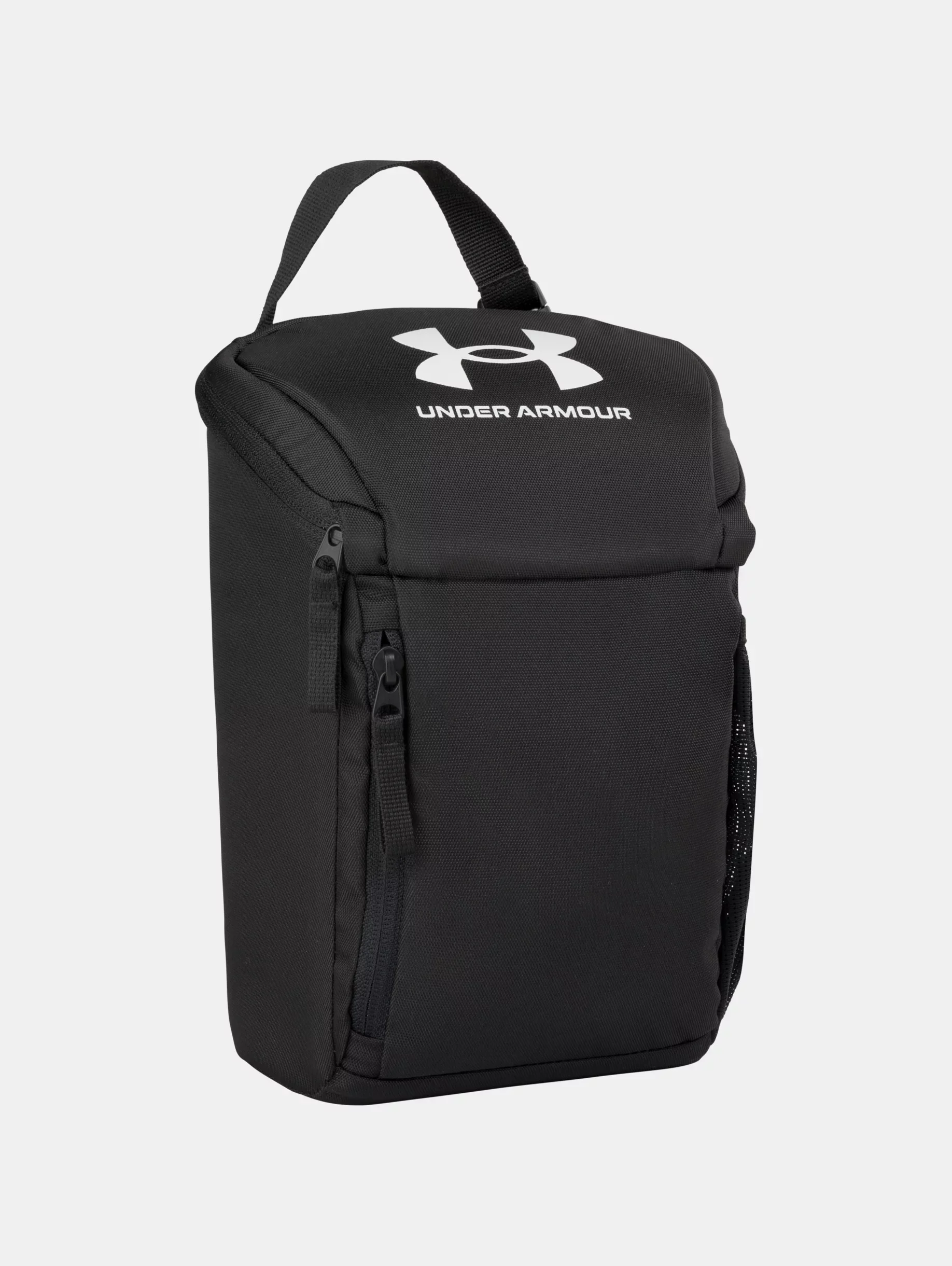 What's it do? Stores multiple drinks, lunch, or other fuel for your hardest practices, with a comfortable handle for carrying that can also clip on to your bag. Product DNA - Water-resistant UA Storm technology on exterior fabric keeps your stuff dry - Wide top opening for easy loading & rigid waterproof liner for easy cleaning - Large zippered front storage pocket & side mesh pocket that fits a water bottle - Built-in clip for easy hang-up - Top grab handle for easy carrying with quick-release clip for attaching to backpack - *Backpack sold separately - One Size Fits All - Style #: 1382555 - BPA- & lead-free - Dimensions: 10.5" H x 7.5" W x 5.5" D - Weight: .75 lbs - Imported