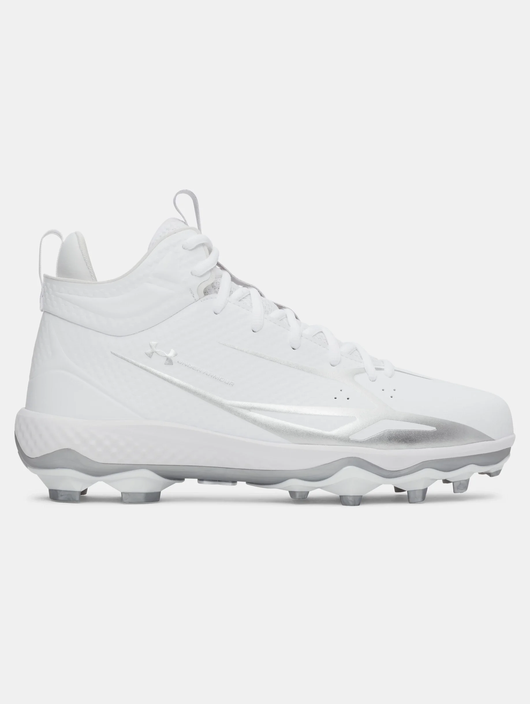 The UA Spotlight was built for players with moves on top of moves.The synthetic upper locks you in so you can start, stop, and cut faster. Product Details - Synthetic upper is light, comfortable & super durable - Mid-top design for added ankle support - Full-length EVA midsole for underfoot cushioning & comfort - TPU plate provides traction & durability on all field surfaces Size & Fit - Regular Space & Care - Style #: 6006216 - Imported