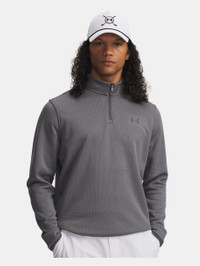 We combined the comfort and warmth of a sweater, the performance of our stretchy, lightweight fleece, and the rain protection of a jacket. You'll wear it all season. Product Details - UA Storm technology repels water without sacrificing breathability - SweaterFleece fabric with subtle grid texture has a soft, brushed interior with stretch for complete mobility - Ribbed details at bottom hem & cuffs - ¼ Zip front makes for easy layering - Built-in tee holder on wearer's right side Size & Fit - Fuller cut for complete comfort. Space & Care - Style #: 6003722 - 100% Polyester - Imported