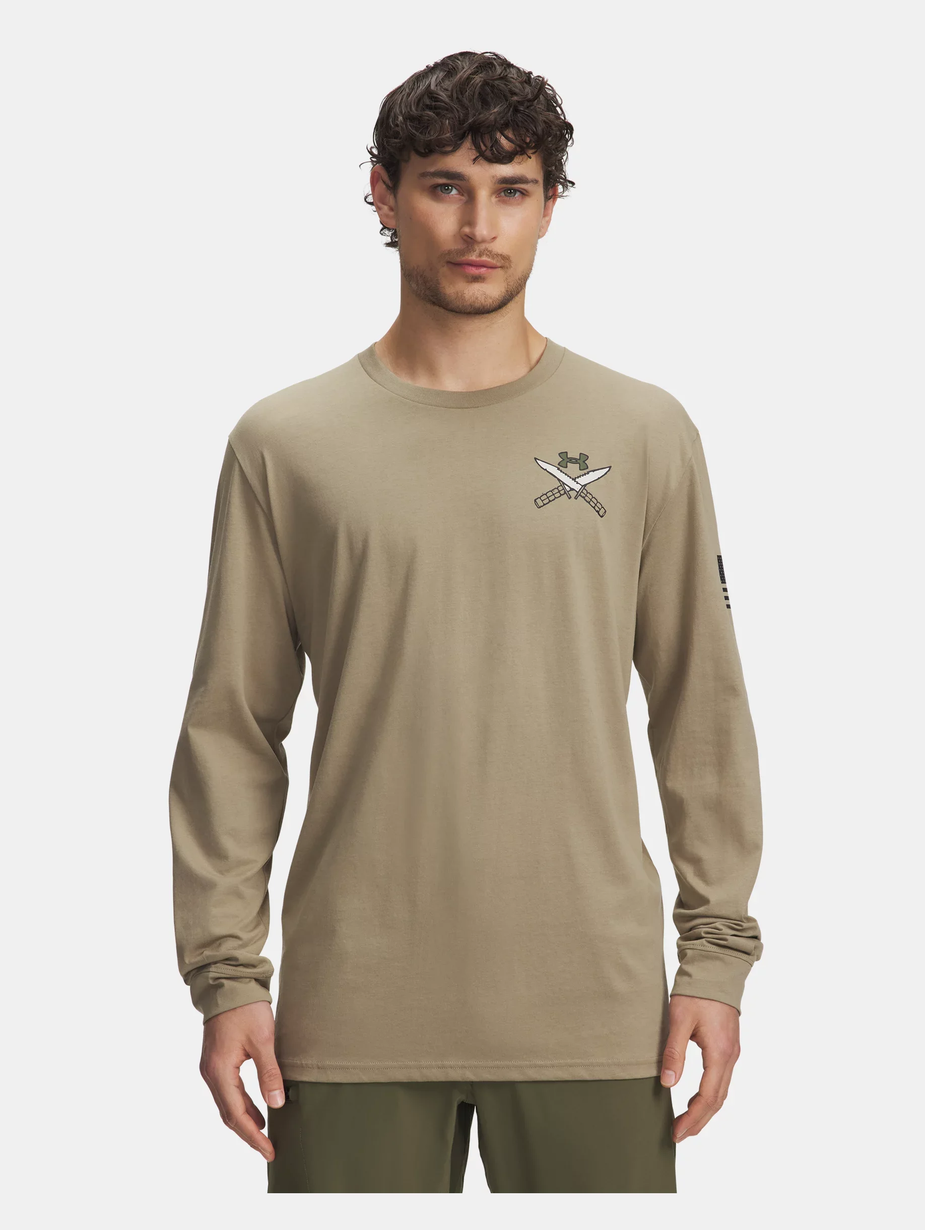 Everyone makes graphic Ts...but Under Armour makes them better.This long sleeve shirt features tactical graphics and light, soft, quick-drying fabric. Product Details - Super-soft, cotton-blend fabric provides all-day comfort - Ribbed collar - Main body fabric contains at least 40% recycled polyester, excluding trims & embellishments Size & Fit - Fuller cut for complete comfort. Space & Care - Style #: 6005243 - 60% Cotton/40% Polyester - Imported