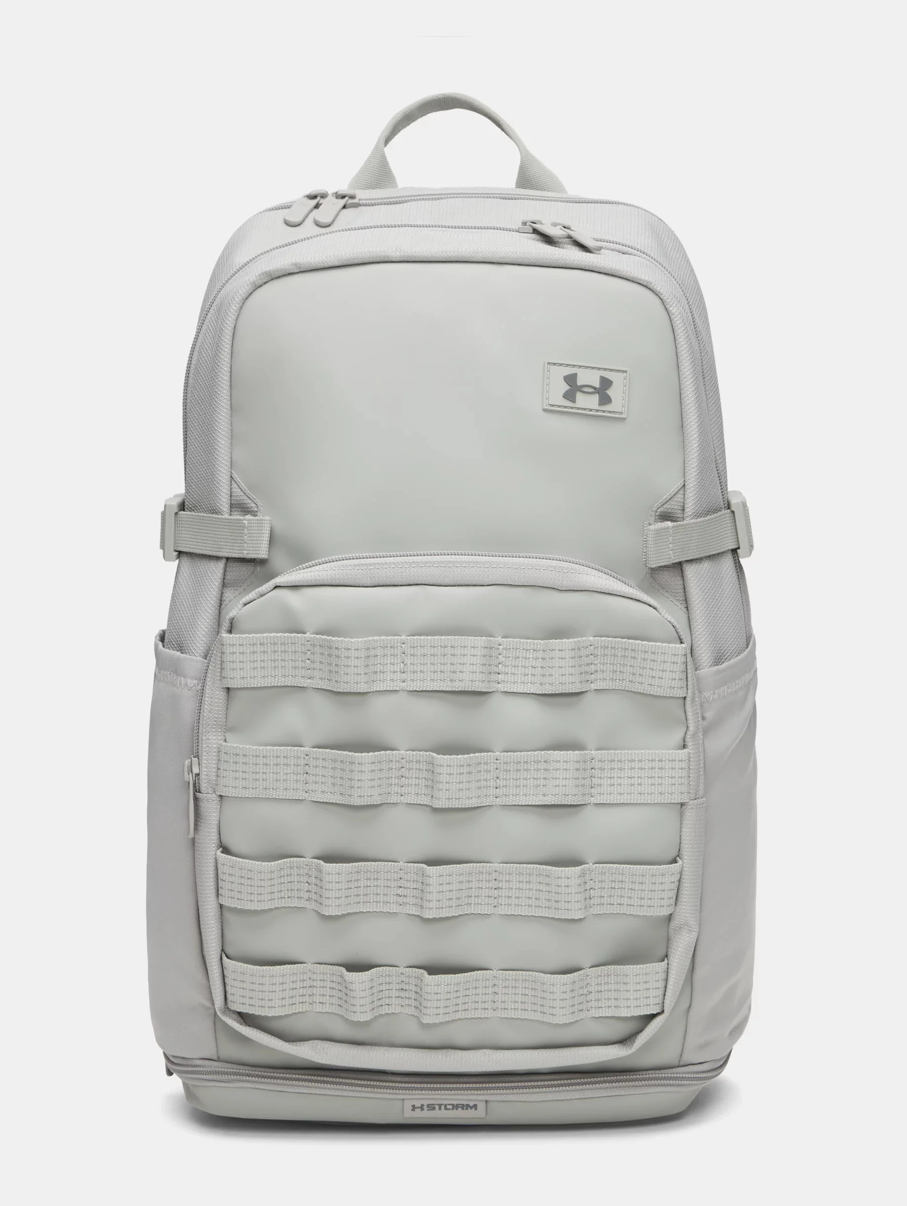Holds everything you need for your entire day.It has expandable webbing, adjustable straps, and ultra-durable, water-resistant materials that'll keep your stuff comfortably safe. Product Details - Water-resistant UA Storm technology keeps your stuff dry - LEVELED™ strap system guides you to assure straps are adjusted evenly for balanced weight distribution - CORDURA® fabric is extremely durable but lightweight with PU-coated front for added protection - Adjustable, removable UA Strap Clip™ on shoulder to prevent duffle bag from falling off when carrying both - Back compartment with laptop sleeve—holds up to 15" MacBook Pro® or similarly sized laptop - Large, expandable front laundry/shoe pocket at bottom of bag - Reflective molle webbing for additional attachment points - 2 side water bottle pockets Size & Fit - One Size Fits Most Space & Care - Style #: 1372290 - Top grab handle - Dimensions When Full: 7.1"W x 18.9"H x 11.4"L - Volume: 1,281.6 Cubic In. / 21 L - 100% Polyester - Imported