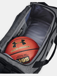 What's it do? Our tried-and-1 UA Undeniable bag just keeps getting better. Lightweight and built with incredibly durable materials, this is your go-to bag for everyday performance. Product DNA - UA Storm technology delivers an element-battling, highly water-repellent finish - Tough, PU-coated & foam-lined bottom & side panels for added durability & structure - Large vented pocket for laundry or shoes & internal slip pockets for organization - Large front zippered organization pocket & molle webbing attachment points - Dual water bottle slip pocket - Adjustable shoulder strap - One Size Fits Most - Style #: 1369222 - Top grab handle - Dimensions When Full: 10.6"W x 10.1"H x 21.7"L - Volume: 40L - 100% Polyester - Imported