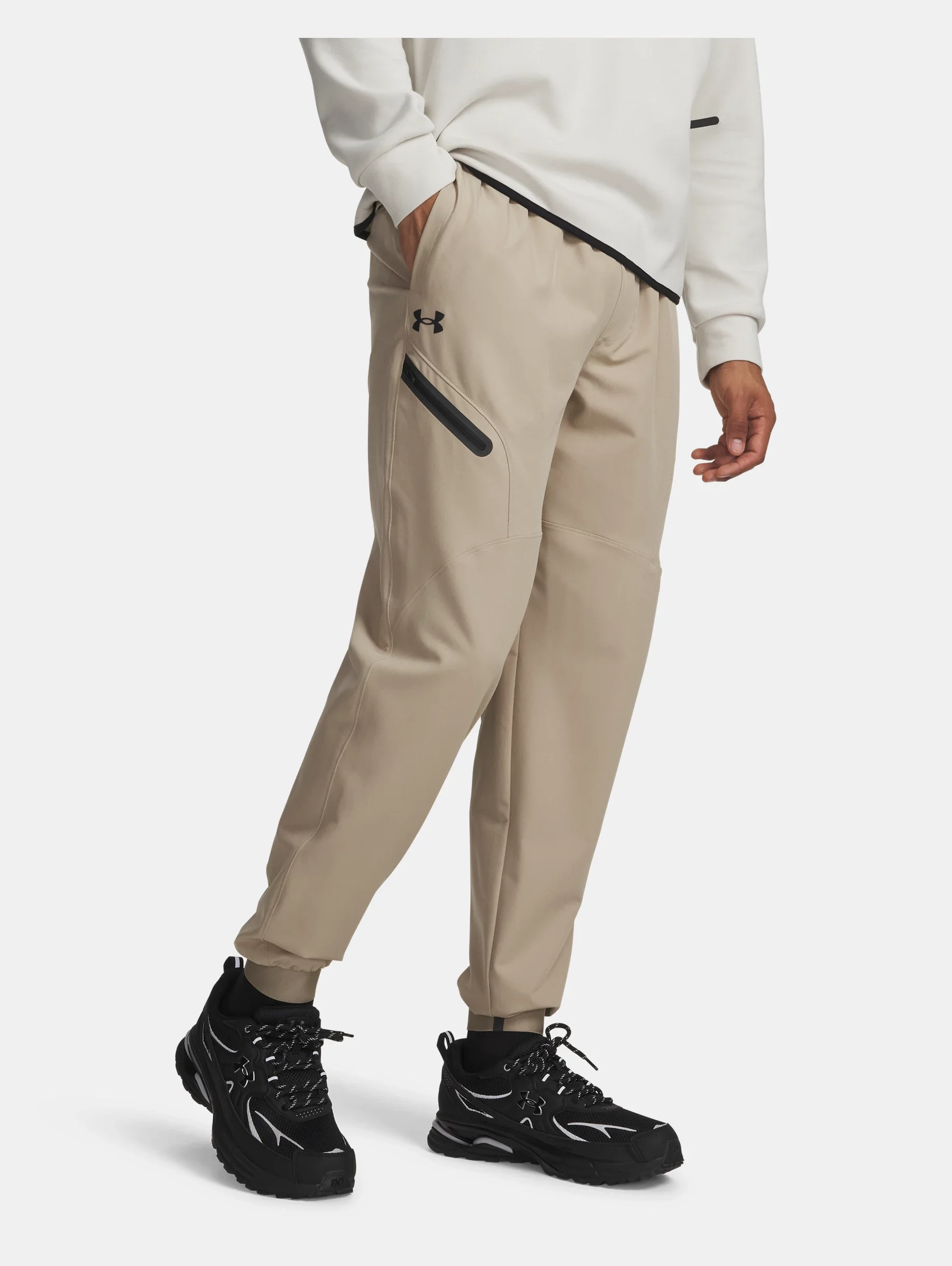 Always on point—it's made with our most technical woven fabric that repels water, stretches when you need it, and is insanely durable. So, when you step out on the street, you can do it confidently. Product Details - UA Storm technology repels water without sacrificing breathability - Light, durable & super-comfortable stretch-woven fabric - 4-way stretch material moves better in every direction - Encased elastic waistband with internal drawcord & functional fly with snap closure - Open hand pockets & bonded, secure zip back pocket & side pocket - Uses a fluorine-free water repellent treatment Size & Fit - Fuller cut for complete comfort. Space & Care - Style #: 1388823 - Inseam: 29.5' - Pockets: Yes - 90% Polyester/10% Elastane - Imported - Tapered leg fit - Wash garment inside out - Machine wash cold with like colors - Do not use softeners - Use only non-chlorine bleach when needed - Tumble dry low - Do not iron - Do not dry clean