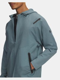If you're looking for a jacket you can actually train in on cold, wet days—you found it. Super-light and stretchy, rain rolls right off, and it keeps you warm but not hot. Product Details - Stretch-woven fabric is lightweight, durable & moves with you - 4-way stretch material moves better in every direction - Bungee adjusts at hood & bottom hem for easy adjustability & a secure fit - Secure, zip hand pockets - Shaped hem & cuffs - Uses a fluorine-free water repellent treatment Size & Fit - Fuller cut for complete comfort. Space & Care - Style #: 1370494 - 90% Polyester/10% Elastane - Imported - Garment should be washed & dried zipped up - Wash garment inside out - Machine wash cold with like colors - Use only non-chlorine bleach when needed - Tumble dry low - Do not iron - Do not use softeners - Do not dry clean