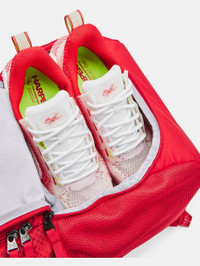 What's it do? Batting gloves, sunglasses, cleats, glove, water bottle—everything has a place. A bag every ballplayer needs. Product DNA - UA Storm technology delivers an element-battling, highly water-resistant finish - Foam padded back panel for enhanced comfort & breathability - Soft tricot-lined front valuables pocket & a hook & loop section for batting glove storage - Built-in fence hook for on field organization - Airvent shoe compartment on front is embroidery compatible for customization - Adjustable, removable UA Strap Clip™ on shoulder to prevent duffle bag from falling off when carrying both - Strap clip works best when sternum clip is fastened - Large capacity holds 4 bats, cleats, batting gloves, valuables, gloves & water bottle - One Size Fits All - Style #: 1369318 - Top grab handle - Dimensions When Full: 10.24"W x 12.68"H x 24.41"L - Volume: 2,196.86 Cubic In. / 36 L - 80% Polyester/20% Nylon - Imported