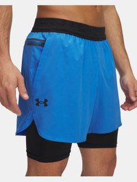 The UA Vanish Elite Shorts were built specifically for total mobility, with ultra-stretchy materials and a hem designed for how your legs move. That means you have full range of motion, no matter how dynamic your workout is. Product Details - Lightweight stretch-woven fabric provides superior mobility & durability - Built-in knit compression shorts for added coverage & support with mesh panels for strategic breathability - Exposed elastic waistband with mesh ventilation & internal drawcord - Laser perforations for increased breathability - Extended gusset provides enhanced mobility - Open hand pockets with secure, zip Strength Pocket™ on right side - Shaped, side-vent hem for better range of motion - Uses a fluorine-free water repellent treatment Size & Fit - Streamlined fit that’s not too tight or too loose. Space & Care - Style #: 1378604 - Inseam (outer shorts): 5" - Inseam (liner shorts): 8.75" - Pockets: Yes - Outer shorts: 87% Polyester/13% Elastane - Liner shorts: 84% Polyester/16% Elastane - Imported - Wash garment inside out - Machine wash cold with like colors - Use only non-chlorine bleach when needed - Tumble dry low - Do not use softeners - Do not iron - Do not dry clean