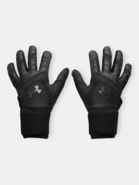 Your go-to batting gloves.Premium leather in the palm for the right feel and a longer cuff for added wrist support and power. Product Details - Premium leather palm for ultimate feel - Lightweight, stretchy HeatGear® fabric on back of hand with leather overlays for added support - Perforations on fingers for strategic ventilation - Stretchy neoprene wrist with adjustable strap provides extended wrist support Size & Fit - Adjustable Space & Care - Style #: 6009230 - Sold in pairs - 54% Leather/20% Polyester/11% Nylon/8% Rubber/7% Elastane - Imported