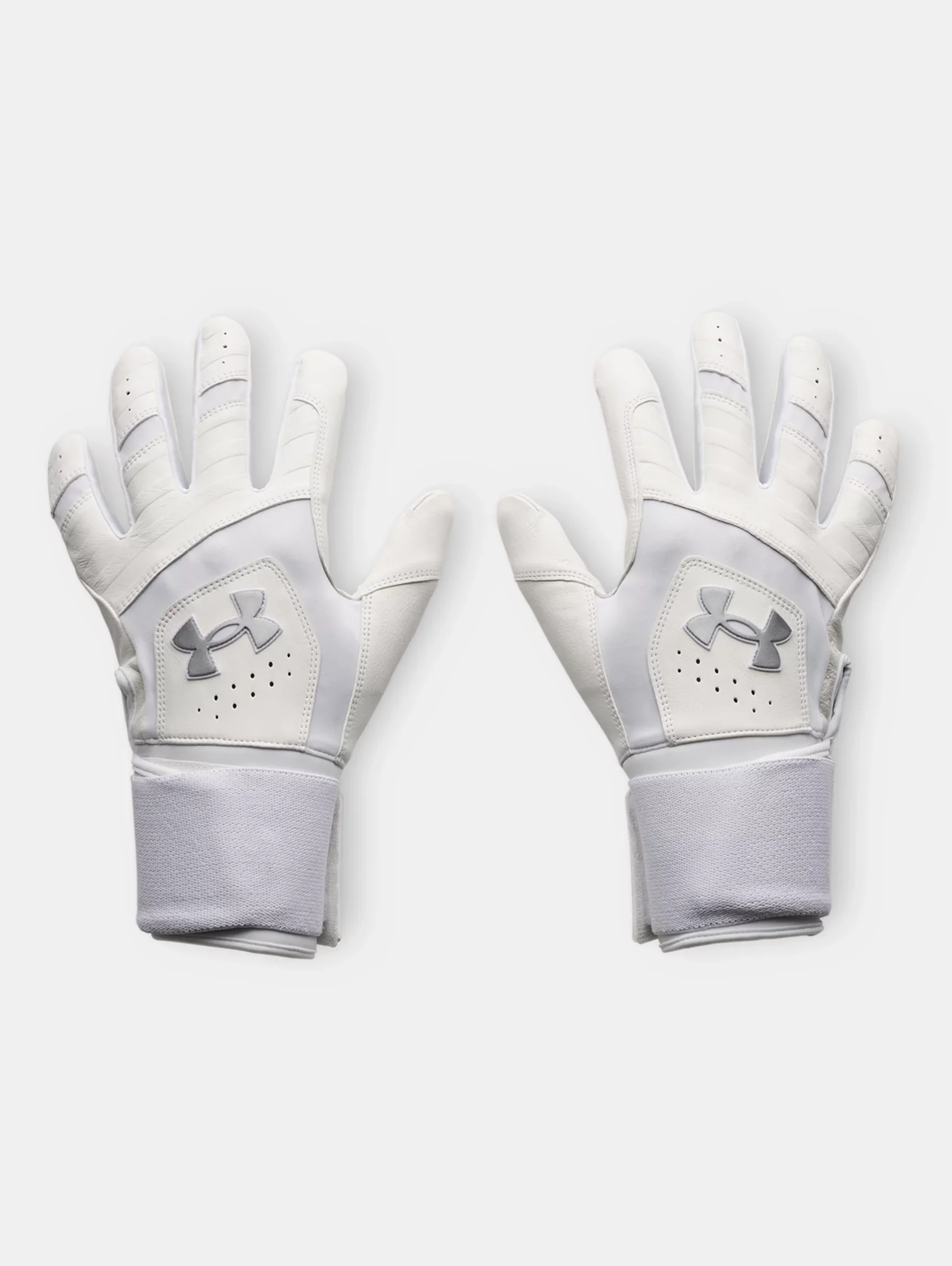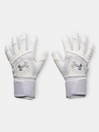 Your go-to batting gloves.Premium leather in the palm for the right feel and a longer cuff for added wrist support and power. Product Details - Premium leather palm for ultimate feel - Lightweight, stretchy HeatGear® fabric on back of hand with leather overlays for added support - Perforations on fingers for strategic ventilation - Stretchy neoprene wrist with adjustable strap provides extended wrist support Size & Fit - Adjustable Space & Care - Style #: 6009230 - Sold in pairs - 54% Leather/20% Polyester/11% Nylon/8% Rubber/7% Elastane - Imported