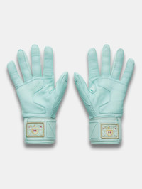 Play like a king and rule the diamond with these batting gloves.Built with premium materials that are ultra-comfortable and give you better control. Plus, top-of-the-line wrist support and even a carry bag for easy storage. Product Details - Full leather back of hand combines smooth & perforated sheepskin for amazing feel & function on the field - Premium sheepskin leather palm provides a supple hand feel for better bat control - Strategically-placed reinforced leather patches for added durability - Thick, 360° molded adjustable cuff strap for best-in-class wrist support - Includes carry bag with durable rubber finish, zip closure, fence hook & lockertag to write your name/number Size & Fit - Adjustable Space & Care - Style #: 1389033 - Gold foil screen-printed details & metallic embroidered patch logo - Sold in pairs - 60% Sheep Leather/11% Goat Leather/11% Nylon/11% Polyester/4% Rubber/3% Elastane - Imported