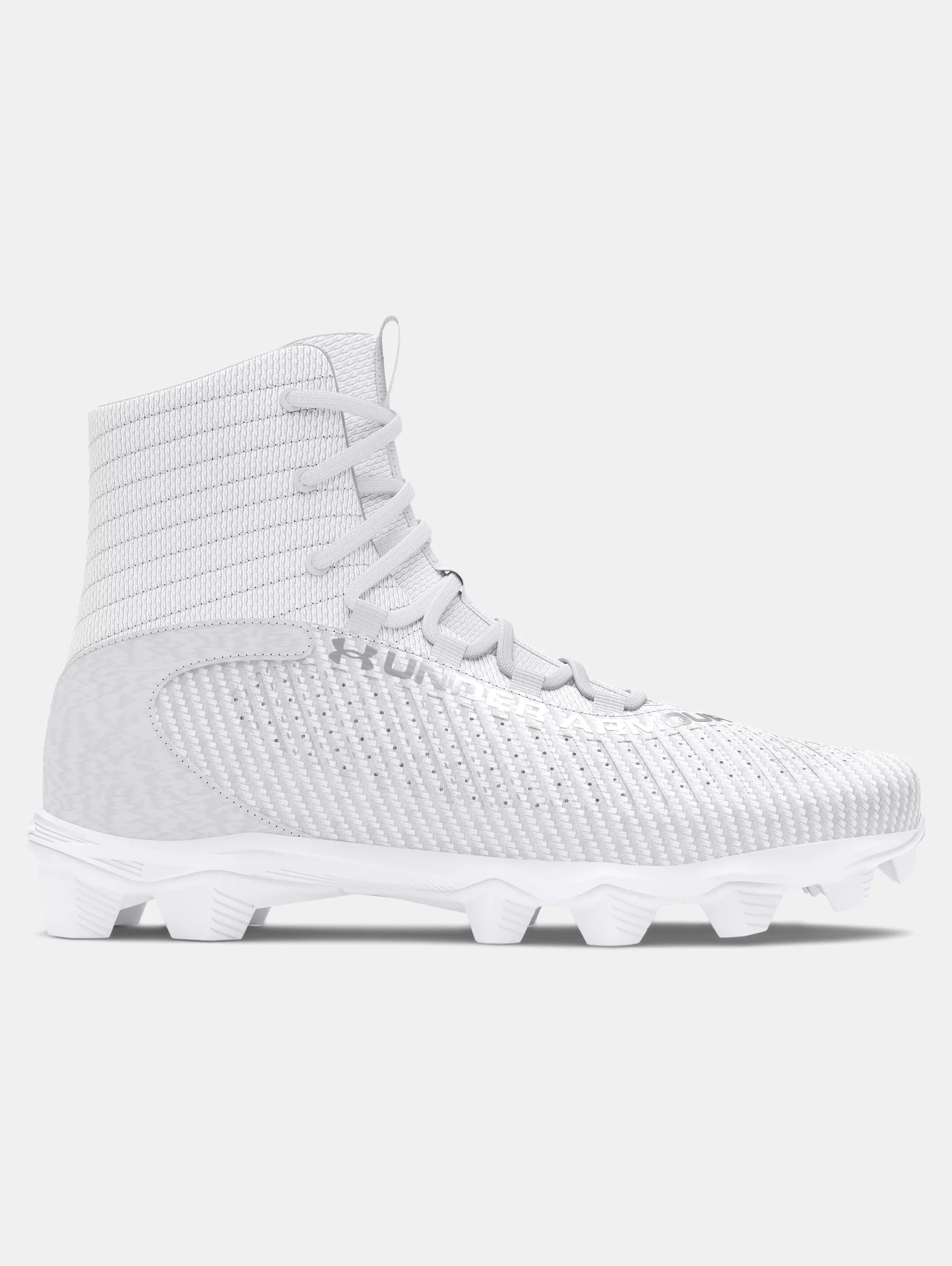What's it do? The Highlight provides powerful support to help you play with unstoppable speed. Even though it's super-high cut, it's still incredibly light and breathable, so you can stay explosive every snap. Product DNA - Performance synthetic upper & textile collar provide a lightweight fit, mobility & durable support - Open-holed mesh tongue for enhanced ventilation - Die-cut EVA sockliner for excellent comfort & durability under the foot - Rubber molded cleats provide aggressive traction on all surfaces with a lightweight, comfortable feel - Regular - Style #: 3027300 - Imported