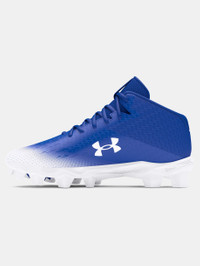 What's it do? The UA Spotlight was built for players with moves on top of moves. It was designed to help you start, stop, and cut quicker so you can leave your opponents in the rearview mirror. Product DNA - Synthetic upper with 3D print for added durability & structure - Soft synthetic collar for added comfort & lockdown around the ankle - 5/8 height for the perfect blend of speed & support - Full-length EVA midsole for underfoot cushion & comfort - Rubber molded cleats provide aggressive traction & durability on all field surfaces - Regular - Style #: 3027293 - Weight: - Imported