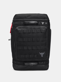 What's it do? Project Rock training gear was built to help you find boundaries, then push right through them. Everything in this collection was personally approved by Dwayne Johnson, the hardest worker in the room. ANY room. Product DNA - Water-resistant UA Storm technology keeps your stuff dry - CORDURA® fabric is extremely durable but lightweight with PU-coated bottom for added protection - Quilted, padded back panel & adjustable shoulder straps make it more comfortable to carry - Zippered back laptop compartment with organization—holds up to 15" MacBook Pro® or similarly sized laptop - Front zip organization panel with molle webbing for additional attachment points - Quick-stash front valuables pocket - Dual-zip side water bottle pockets - 1 top & 2 front grab handles for multiple ways to carry - One Size Fits All - Style #: 1372292 - Metal Brahma bull logo - Dimensions When Full: 5.7"W x 19.5"H x 12.3"L - Volume: 2,013.8 Cubic In. / 33 L - 100% Polyester - Imported
