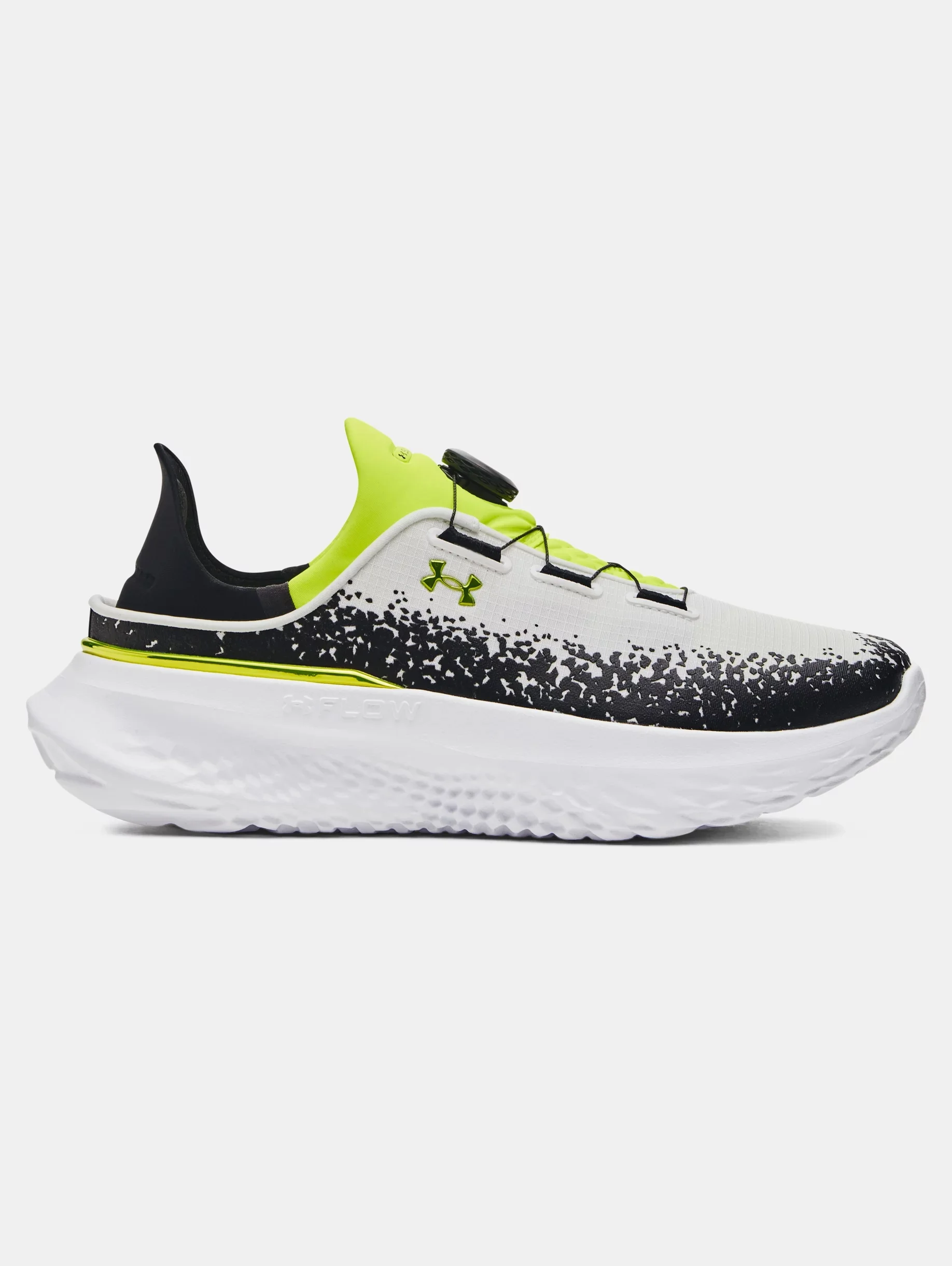The most versatile shoes we've ever made with a supersized midsole for mega energy.They feel great, cushion better, fit perfectly, handle your toughest runs, AND have a heel that converts easily from slip mode to speed mode. Product Details - SUPERSIZED UA FLOW CUSHIONING: Unmatched comfort, ground contact & traction - BREATHABLE UPPER: Durable ripstop material with engineered venting & full-length graphic print detail - BOA FIT SYSTEM: A personalized fit, one click at a time, with a 12-point lockdown system - ISO-CHILL PADDED INTERIOR: Heel to toe interior foam padding with cool-to-the-touch Iso-Chill technology - MACHINE WASHABLE: We made it easy—put them in the wash to keep them fresh & clean* - CONVERTIBLE HEEL: Go from run mode to recover mode - *Laundry bag not included Size & Fit - Regular Space & Care - Style #: 3028539 - Lace type: BOA™ - Imported