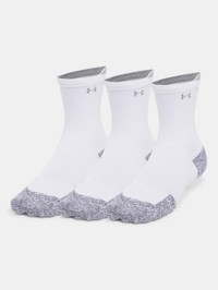 What's it do? We went down to the yarn level to make our fastest-drying socks ever. The fabric evenly disperses moisture, allowing sweat to evaporate more quickly, so you'll run lighter, drier, and cooler. Product DNA - Ultra-light & fast drying ArmourDry® yarn technology improves the performance of your shoe - Evenly disperses moisture, allowing sweat to evaporate faster for a lighter, drier & cooler run - Breathable mesh ventilation channels where you need it most - Energy return cushioning on ball of foot & toe for added protection in high-impact areas without added bulk - Locked-in fit design keeps sock securely on heel for an adjustment free fit that won't fall down - Built-in arch support band - Odor control technology reduces odor in the sock - Seamless toe delivers superior comfort & reduced irritation - Regular - Style #: 1387043 - Left/Right specific fit & design - Reflective logo for low-light runs - 3 pairs of socks - 94% Polyester/5% Elastane/1% Nylon - Imported