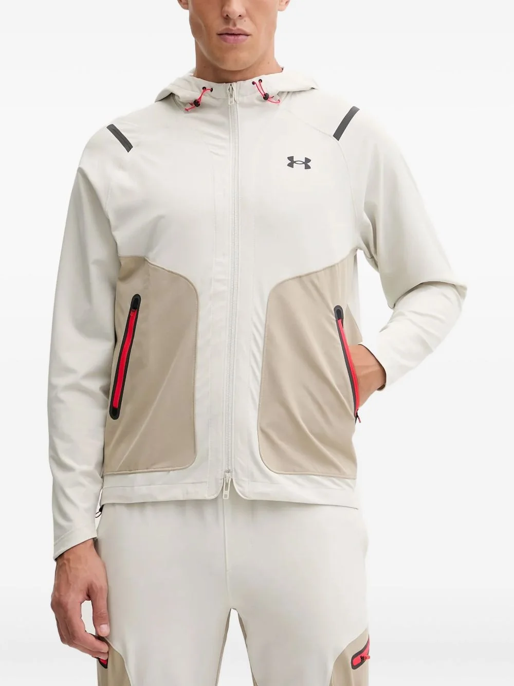 zip-fastening jacket Highlights - Beige - Hooded - Zip fastening - Logo detail - Panelled design - Drawstring detail Imported Composition Polyester 90%, Elastane 10% Washing instructions Machine Wash