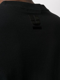 tape print T-shirt black cotton tape detailing crew neck short sleeves straight hem Imported Composition Cotton 100% SIZE & FIT Model measurements Height 6 ft 1 in(1.86 m) Bust/Chest 36.61 in(93 cm) Hips 36.61 in(93 cm) Waist 29.92 in(76 cm) FittingInformation This piece fits true to size. We recommend you get your regular size Cut for a relaxed fit Made with a mid-weight fabric Washing instructions Machine Wash
