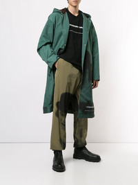 A Clockwork Orange print track pants Khaki green A Clockwork Orange print track pants from Undercover featuring an elasticated waistband and side pockets. Imported Composition Nylon 63%, Acrylic 19%, Rayon 10%, Polyurethane 8% SIZE & FIT Model measurements Height 6 ft 0 in(1.83 m) Bust/Chest 37.79 in(96 cm) Hips 37 in(94 cm) Waist 30.31 in(77 cm) FittingInformation This piece fits true to size. We recommend you get your regular size Cut for a relaxed fit Made with a mid-weight stretch fabric Washing instructions Hand Wash
