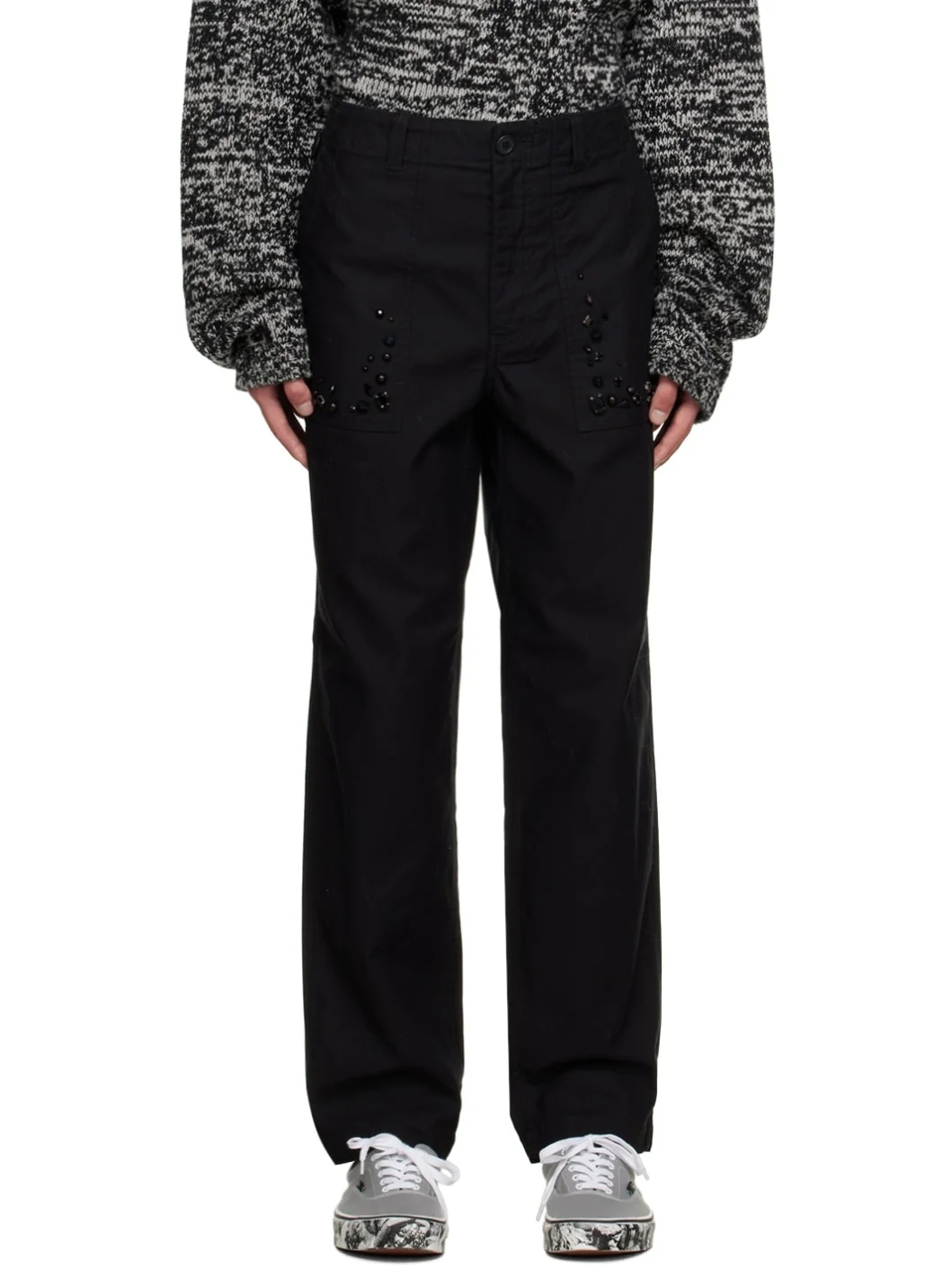 Plain-woven Cordura® cotton- and nylon-blend trousers. · Belt loops · Four-pocket styling · Zip-fly · D-ring tab at outseams · Beaded appliques at front Supplier color: Black 70% cotton, 30% nylon. Made in Japan 232414M191006