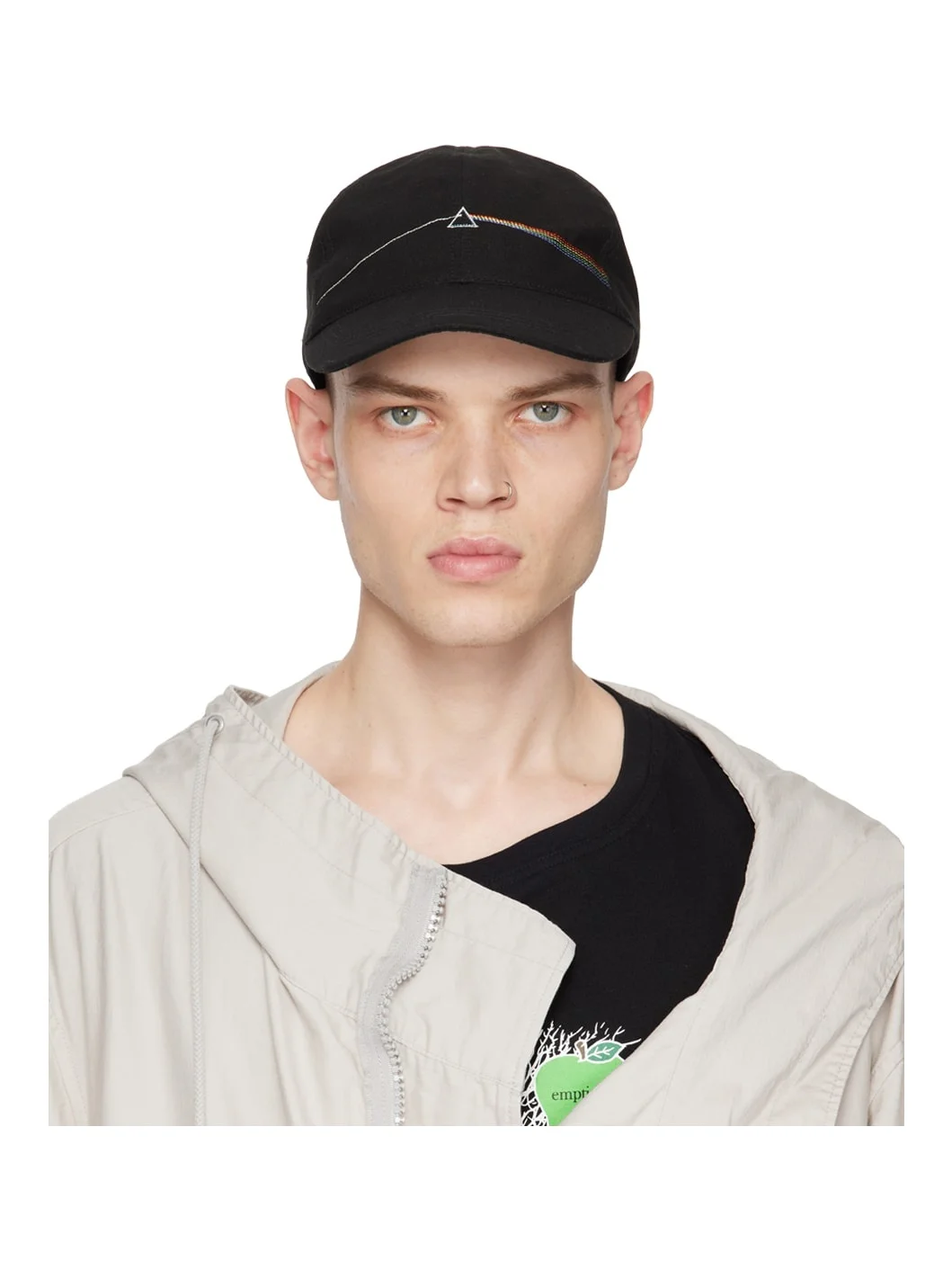 Linen- and cotton-blend hopsack cap in black. · Metal eyelet vents at crown · Logo graphic embroidered at face · Curved brim · Cinch strap at back · Partial twill lining Part of UNDERCOVER's Pink Floyd capsule collection. Supplier color: Black