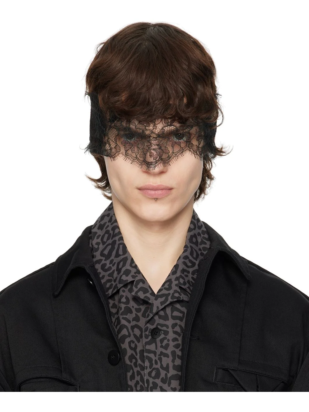 Cotton lace headband in black. · Self-tie fastening at back · Gold-tone hardware · W4" Supplier color: Black Body 1: 100% cotton. Body 2: 100% leather. Made in Japan 251414M140000