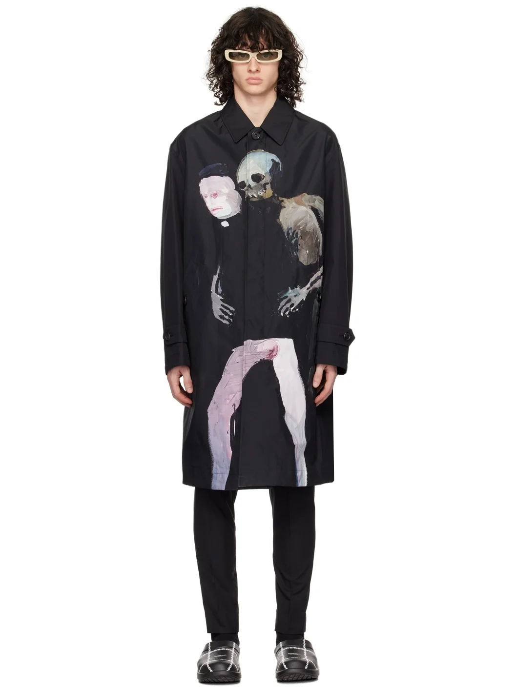 Waterproof eVent® nylon taffeta coat. · Spread collar · Concealed button closure · Graphic printed at front · Welt pockets · Logo embroidered at sleeve · Button tab at cuffs · Adjustable button tabs at back · Zip vent at back hem · Taped seams at interior · Unlined Featuring artwork by Helen Verhoeven. Supplier color: Black 100% nylon. Made in Japan 241414M176000