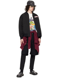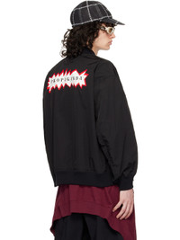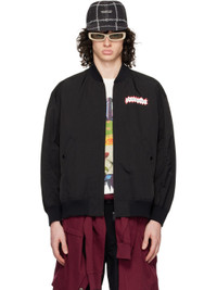 Nylon honeycomb ripstop bomber jacket. · Rib knit stand collar, hem, and cuffs · Zip closure · Text graphic printed at chest and back · Welt pockets · Unlined Supplier color: Black Body: 100% nylon. Trim: 50% cotton, 50% polyester. Made in Japan 241414M175008