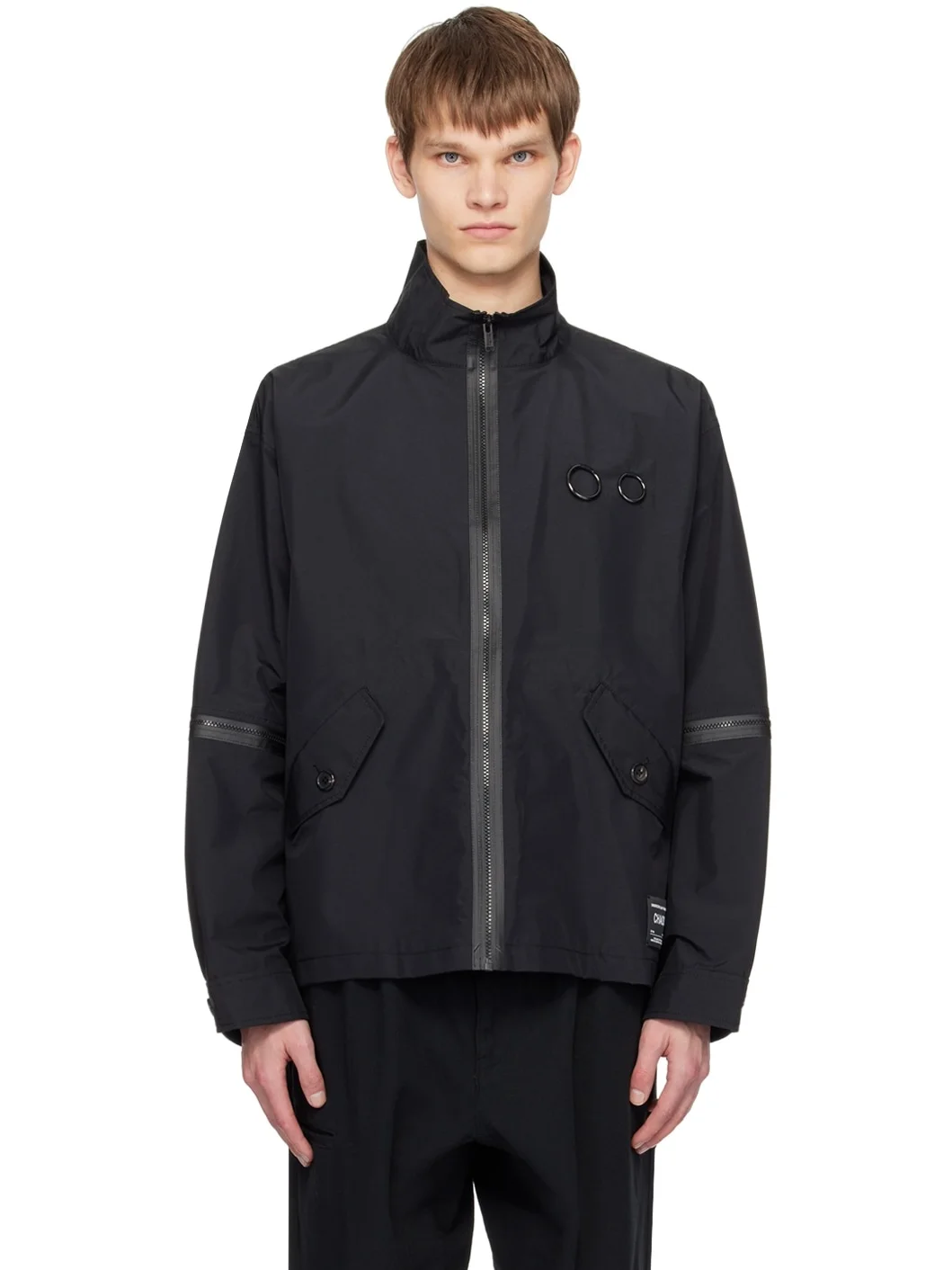Nylon taffeta jacket. · Stand collar · Zip closure · O-rings at chest · Flap pockets · Logo patch at hem · Dropped shoulders · Detachable zip panel at sleeves · Zip vent at back · Full twill lining Supplier color: Black Body: 100% nylon. Lining: 100% nylon. Made in Japan 241414M180003