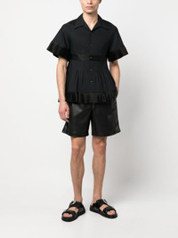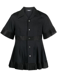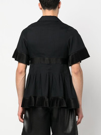buttoned flared shirt black cotton blend pleat detailing satin trim camp collar bell sleeves front button fastening peplum hem Imported Composition Cotton 63%, Rayon 37% SIZE & FIT Model measurements Height 6 ft 1 in(1.85 m) Bust/Chest 35.82 in(91 cm) Hips 37.79 in(96 cm) Waist 29.13 in(74 cm) Washing instructions Dry Clean Only