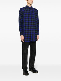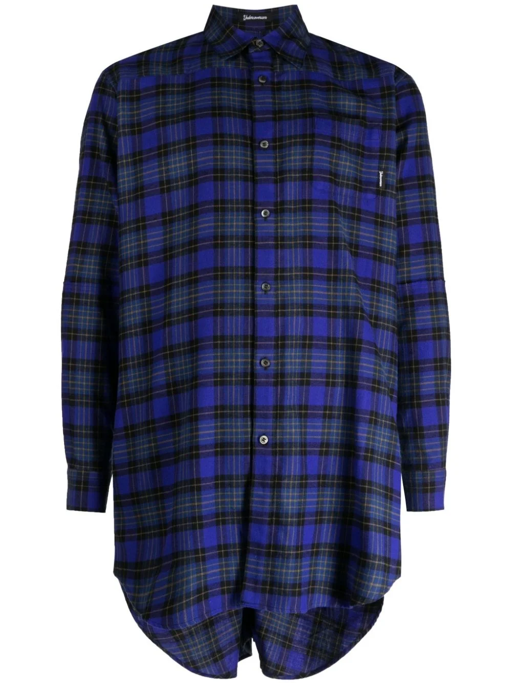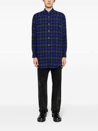 checkered ruched cotton shirt Highlights - Electric purple/navy blue - Cotton - Panelled design - Check pattern - Mini logo tag - Ruched detailing - Spread collar - Front button fastening - Long sleeves - Chest patch pocket - High-low hem Imported Composition Cotton 100% SIZE & FIT Model measurements Height 6 ft 2 in(1.87 m) Bust/Chest 34.25 in(87 cm) Hips 36.22 in(92 cm) Waist 29.52 in(75 cm) FittingInformation Designed to be unstructured, offering a loose fit throughout Made from a midweight non-stretch fabric This piece fits true to size – take your usual size Washing instructions Hand Wash