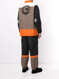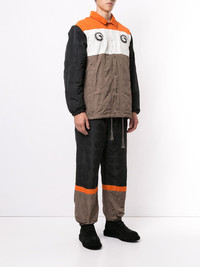 colour-block logo-print jacket black/beige/white straight-point collar front button fastening long sleeves elasticated cuffs two side slit pockets straight hem Imported Composition Polyester 100% SIZE & FIT Model measurements Height 6 ft 0 in(1.83 m) Bust/Chest 37.79 in(96 cm) Hips 37 in(94 cm) Waist 30.31 in(77 cm) FittingInformation This piece fits true to size. We recommend you get your regular size Cut for a loose fit Made with a mid-weight fabric Washing instructions Hand Wash