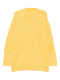 crew-neck cardigan Highlights - Mustard yellow - Front button fastening - Two side patch pockets - Long sleeves Imported Composition Polyester 53%, Acrylic 20%, Nylon 19%, Wool 8%
