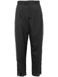 double-layered trousers Highlights - Grey - Melange effect - Knitted panels - Contrasting panel detail - Layered design - Belt loops - Concealed front zip fastening - Pressed crease - Slip pockets to the sides - Two rear jetted pockets - Tapered leg - When buying this unisex item, keep in mind that it is graded in standard men's sizing. Imported Composition Outer: Polyester 60%, Wool 40% Lining: Cupro 100% Trims: Cotton 100%