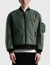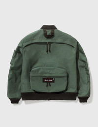 - Undercover - Eastpak Bomber Jacket - Relaxed fit - Ribbed collar, cuffs and hem - Zip fastening - Chest woven brand patch - 2 side zip pockets - Sleeve zip pouch - Rear backpack-inspired design - Rear pull loop and zip compartments - Color: Khaki Grey - Material: 100% Nylon - See more - Jackets - and - Clothing SIZING - Model wears size 2 - Model measures: Height 183cm, Chest 36”/91cm, Waist 28”/70cm, Hip 36”/91cm