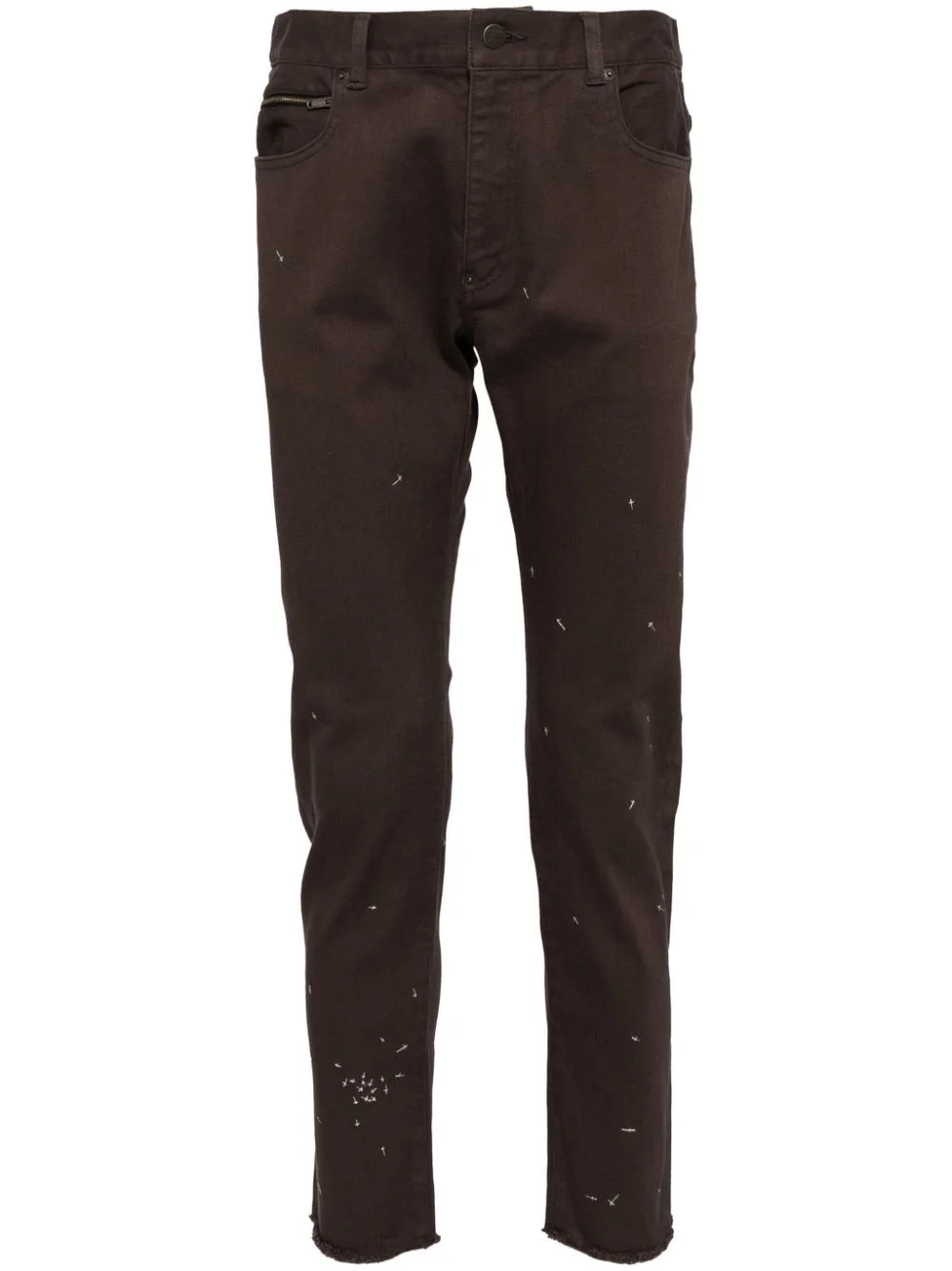 embroidered design jeans Highlights - Charcoal brown - Cotton blend - Denim - Front button and zip fastening - Embroidered design - Logo-embossed buttons - Two side slash pockets - Zip-fastening pocket - Straight hem Imported Composition Cotton 98%, Polyurethane 2%